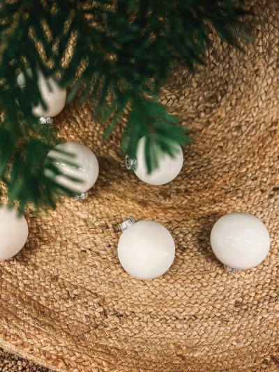 Kauniit Twirl kierretystä lasista valmistetut joulukuusenpallot ovat uskomattoman kauniita ja hohtavat kauniisti joulukuusen valojen vieressä. Ne ovat Ferm Livingiltä, samoin kuin suloiset Glass Baubles joulukuusenpallot.