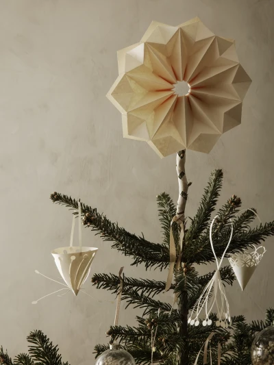 Joulukuusen tähti latvassa on kirsikka kakun päällä. Aveon valikoimaan kuuluu Ferm Livingin Paper Star Sun paperitähti. Hirah olkitähti Bloominvilleltä ja messinkinen Brass Top Star Ferm Livingiltä.