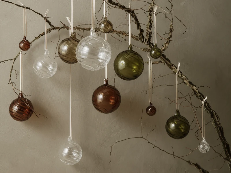 Veke Swedenin kaunis Virvel kynttilä ja Twirl joulukuusen pallot Ferm Livingiltä.