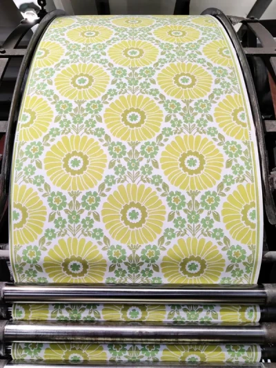 - Tapetin valmistus tehdään kolmessa vaiheessa. Ensin tapetin pohjaväri painetaan erillisellä painokoneella, usein vuota on jopa kahden kilometrin pituinen. Kun pohjaväri on kuivunut, painetaan kuvio rotaatiopainokoneella - eri kuviorullat painavat oman osuutensa kokonaisuudesta. Kun kaikki värit ja kuviot ovat paikallaan, tapetti kuivataan ilmavasti, pitkillä laskoksilla tehtaan katossa. Lopuksi tapetti rullataan suurelle rullalle ja jälkikäsitellään. Tämän jälkeen tapetti leikataan kymmenen metrin pituisiksi osiksi ja rullataan myyntivalmiiksi. Esivalmistelu, hienosäätö ja vanhat painokoneet vaativat suurta käsityöläistaitoa.