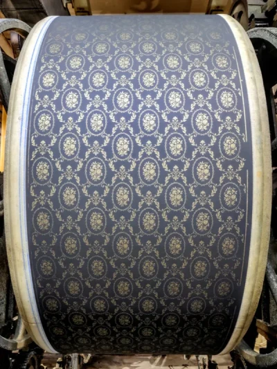 - Nykyäänkin paperitapetit painetaan samalla perinteisellä menetelmällä, samassa punatiilisessä tehtaassa, Nahkialanlammen rannalla. Koska painomenetelmät ovat vanhoja, tapettien kuviointikin on eläväistä - väreissä ja kuvioissa on eroja eri painosarjojen välillä. Näin ollen kannattaa olla erityisen tarkka siitä, että kaikki tapettirullat ovat samaa tuotantoerää. Valikoimassa on yli 80 eri kuviota.