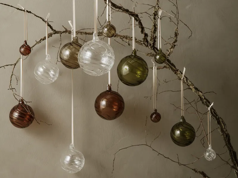 These beautiful Christmas baubles, Twirl from Ferm Living, are mouth-blown and the glass is twisted to get its beautiful pattern. The two larger sizes are sold in packs of four, while the smallest comes in packs of eight with one or two baubles in each color.