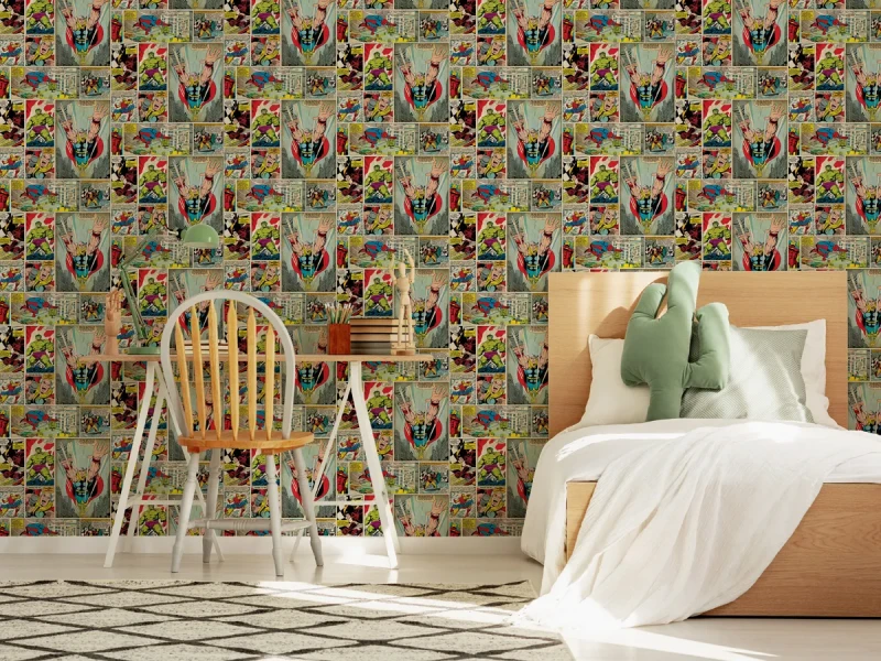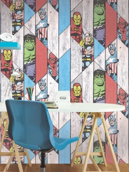 Sandudd's collection Kids@Home contains several wallpapers inspired by the world of comics. Here are Marvel Comic Strip and Marvel Wood Panel with Captain America leading the charge, sweet Mickey and Minnie on the Mickey and Minnie Sketch wallpaper, or Spiderman on the Spiderman Pow! wallpaper.