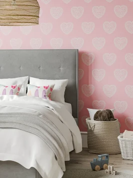 Harlequin's sweet hearts on wallpaper Sweet Heart have a regular pattern and are available with a white or pink background.