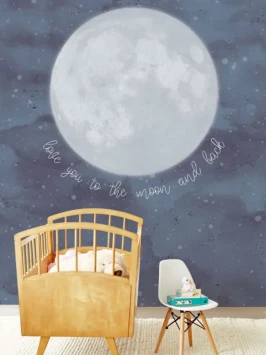 "Love you to the moon and back" is something we often say to our children. On the cute wallpaper To The Moon from Eijffinger, the phrase is written in English.