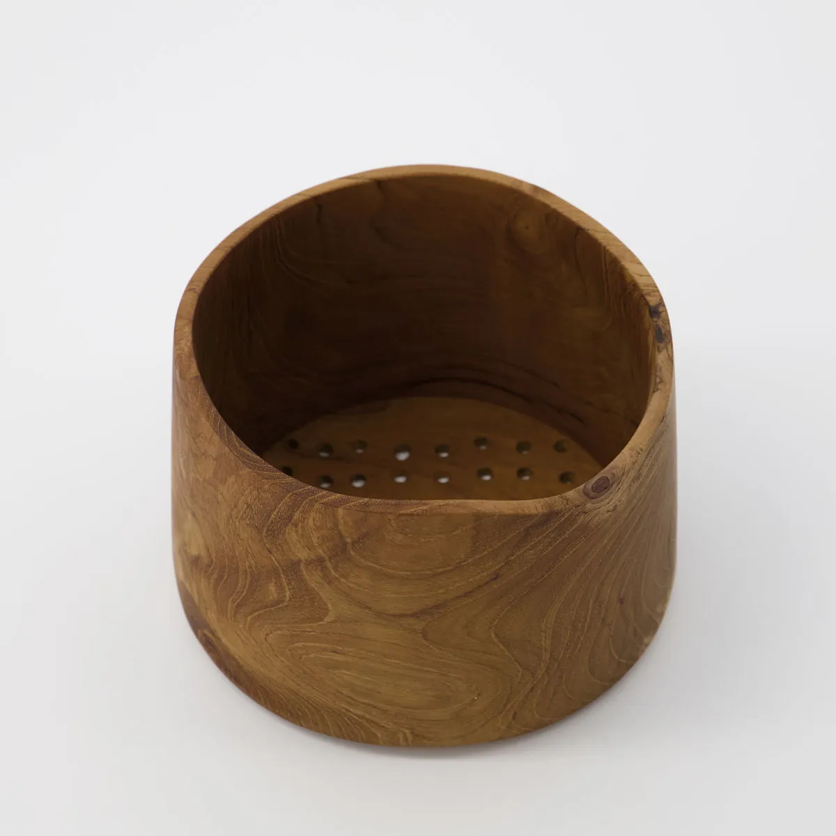 The modern wooden bowl Berry Bowl in teak is delightfully uneven and adds a softness to the kitchen in contrast to steel. The bowl has ventilation holes in the bottom, allowing you to store onions, garlic, or berries in it without it being too tight. The bowl can also be used for storing small items in the hallway, bathroom, living room, or bedroom. Three size options.