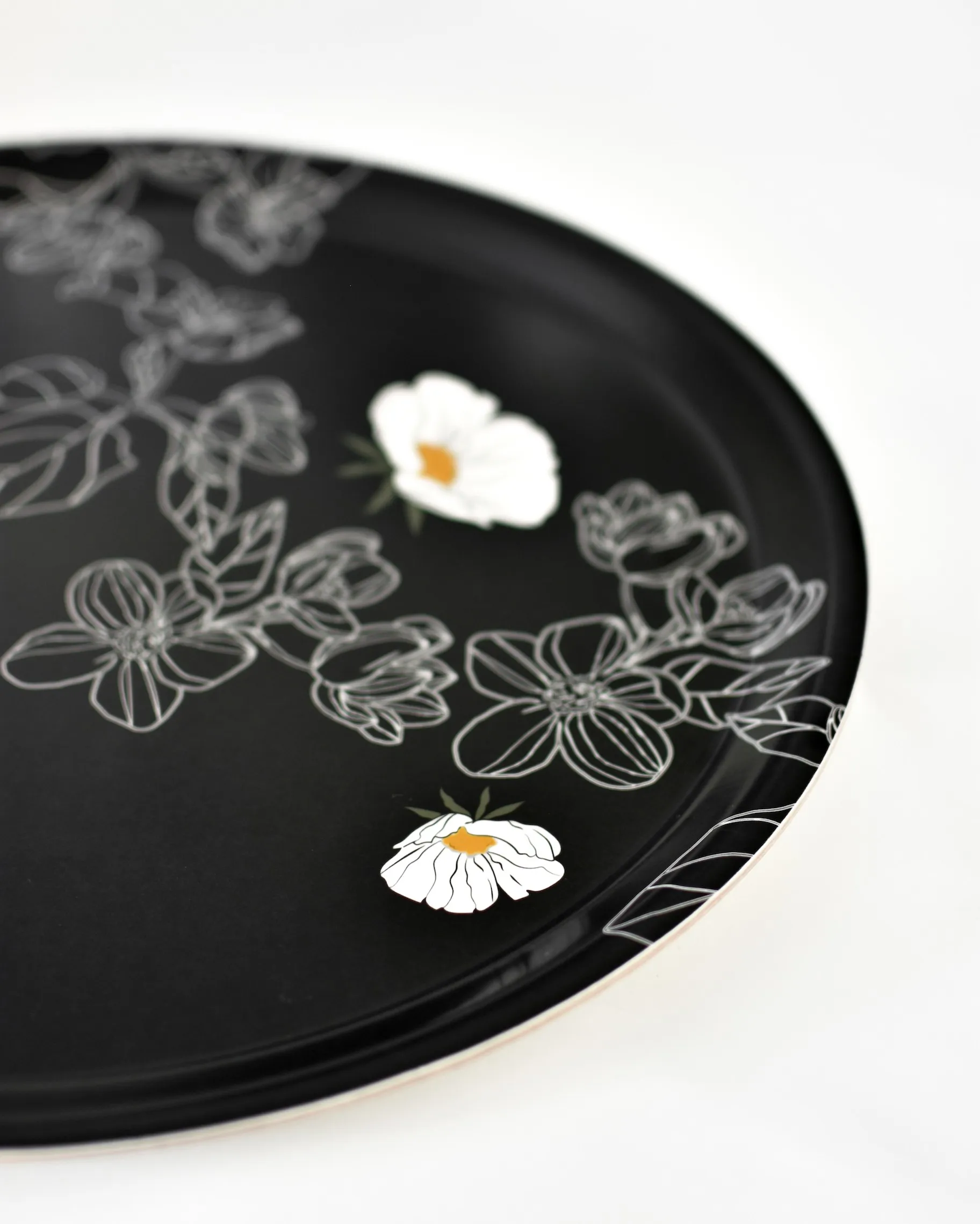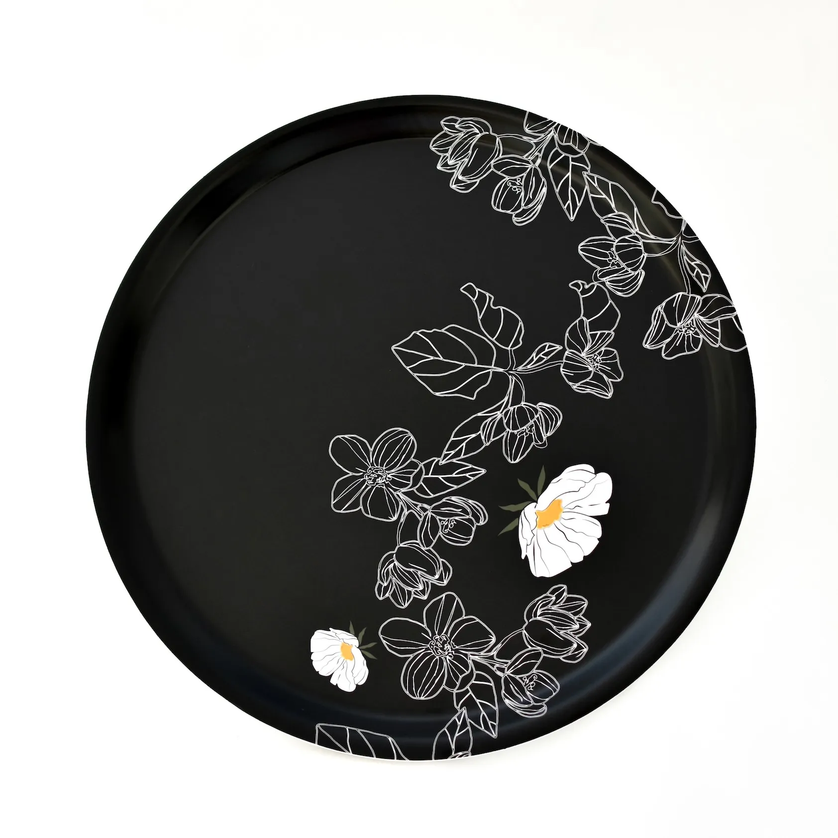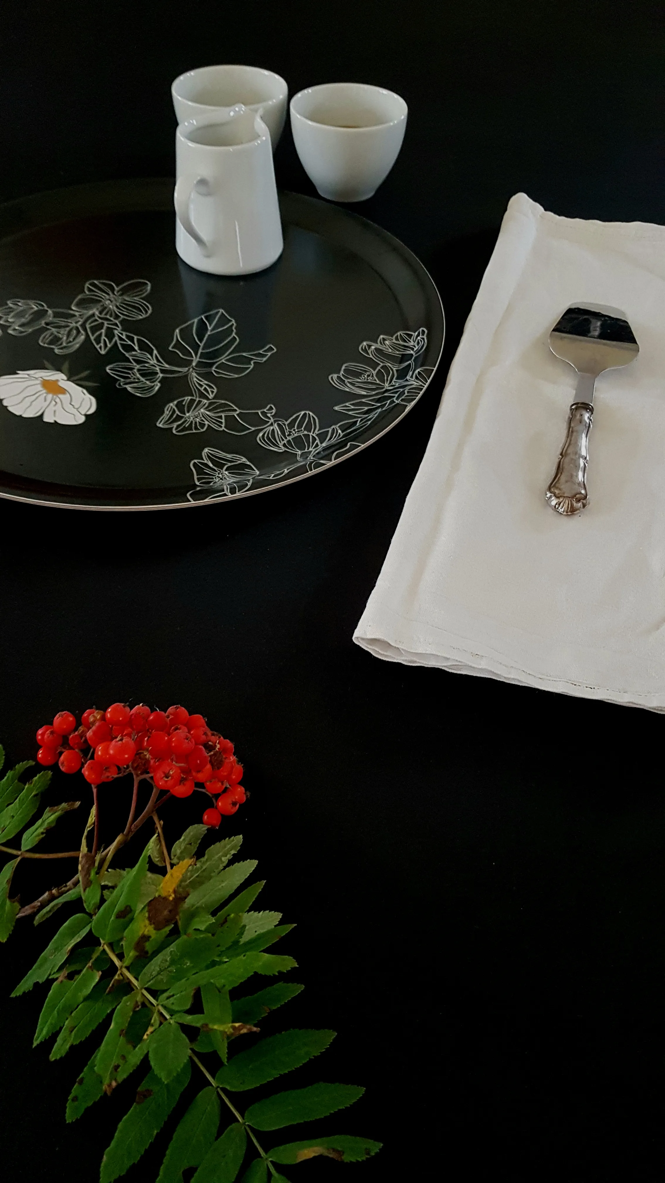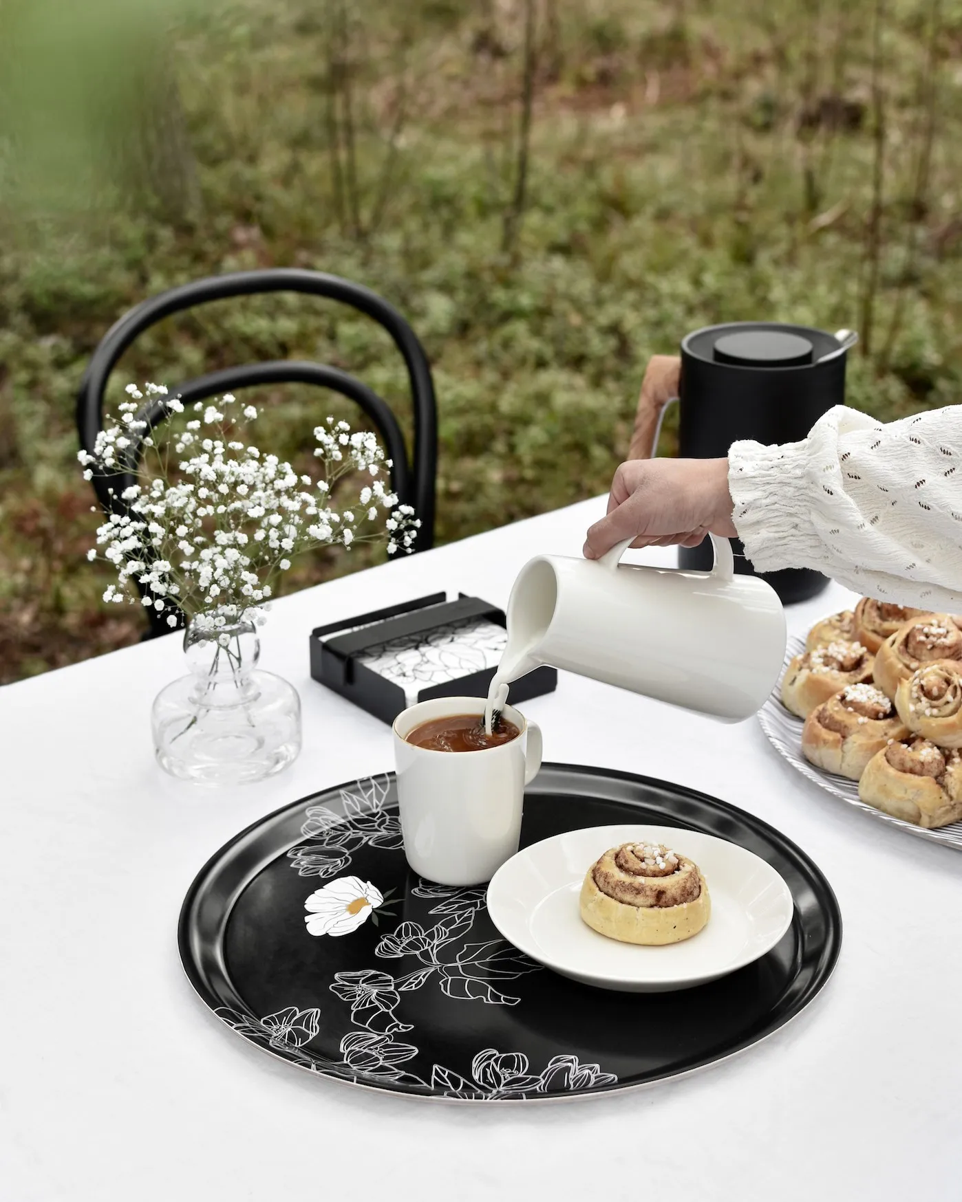 Johanna is our black tray, inspired by Midsummer. The Midsummer tray features a black base with a delicate apple blossom pattern accompanied by Midsummer roses. The Ostrobothnia series is a Finnish design series that draws its inspiration from the nature of Ostrobothnia.