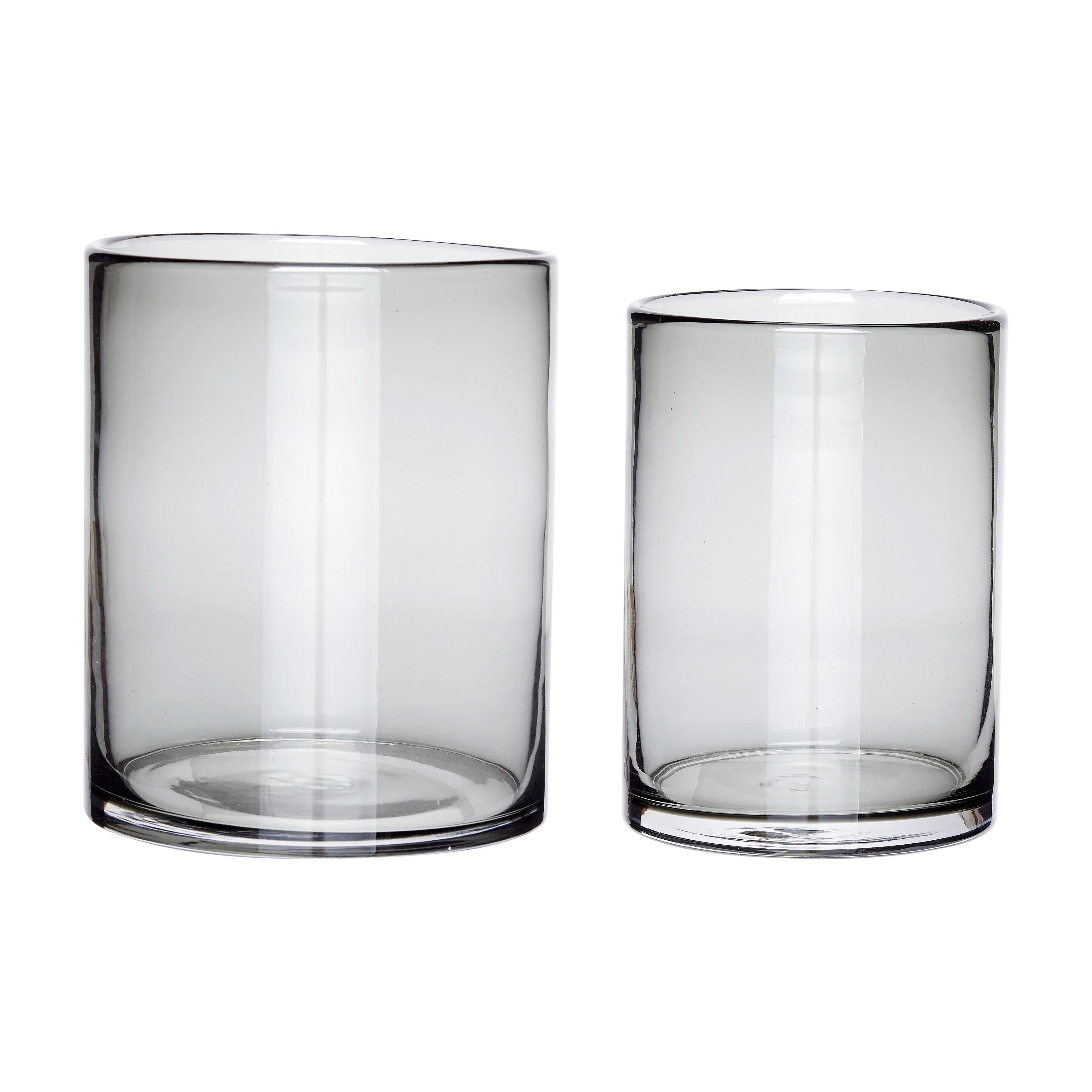 The Near vases are sold in pairs. The cylindrical vases are simple and elegant in smoky gray glass. Beautiful for all flower bouquets! Perfect as a gift with a beautiful flower in it.