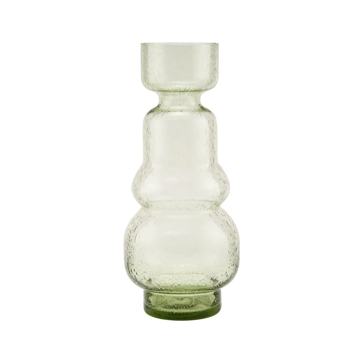 House Doctors small glass vase Organi with rounded shapes wants to be in the spotlight. The vase is elegant and exciting with bubbles in the glass. Use it as a focal point on the table or as part of a group of beautiful decorative items.