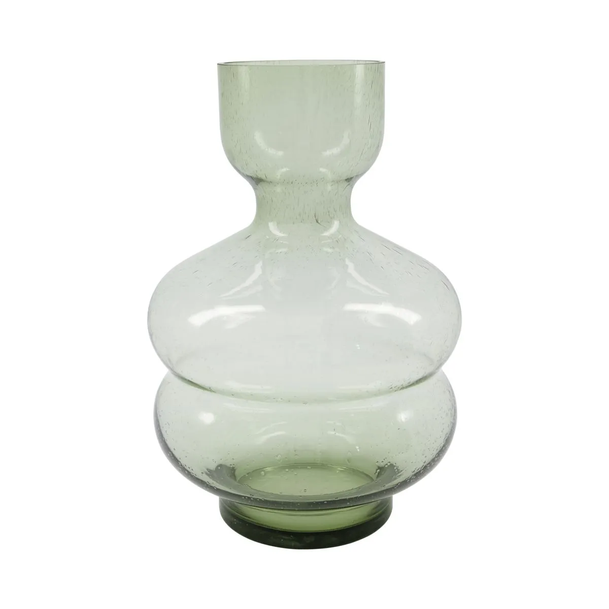 House Doctor's glass vase Organi with rounded shapes wants to be in the spotlight. The vase is elegant and exciting with bubbles in the glass. Use as a focal point on the table or as part of a group of beautiful decor items.