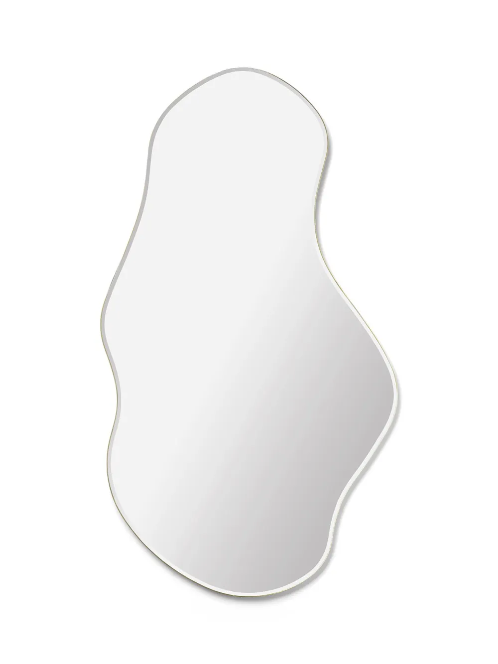 Ferm Living's Pond Mirror mirrors bring elegance and style to your home. This unique and stylish mirror not only adds functionality but also a touch of luxury. The Pond Mirror is designed to reflect the organic shapes of nature, mimicking the soft and curved lines of lakes. Its asymmetrical design creates a dynamic and modern look that fits many different interior styles.