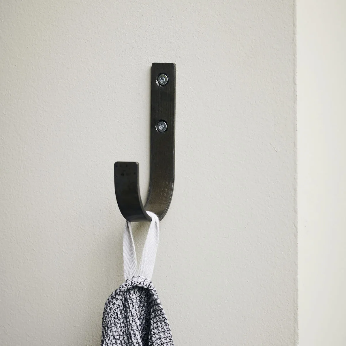 The Simply hooks are simple and robust in an industrial style. Use the hooks in the bathroom for towels or small baskets with skincare products - or in the bedroom and hallway for clothes, bags, or scarves.
