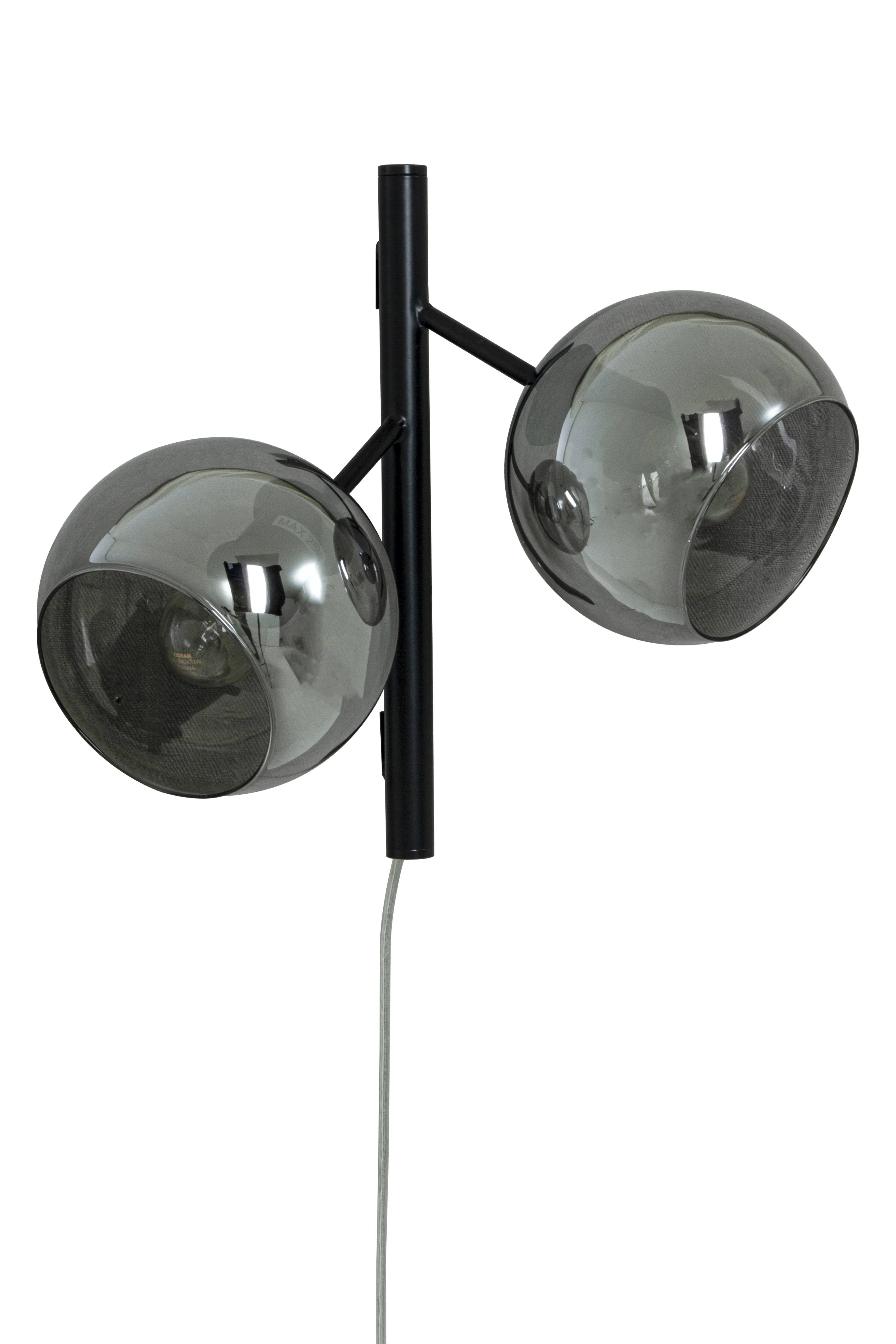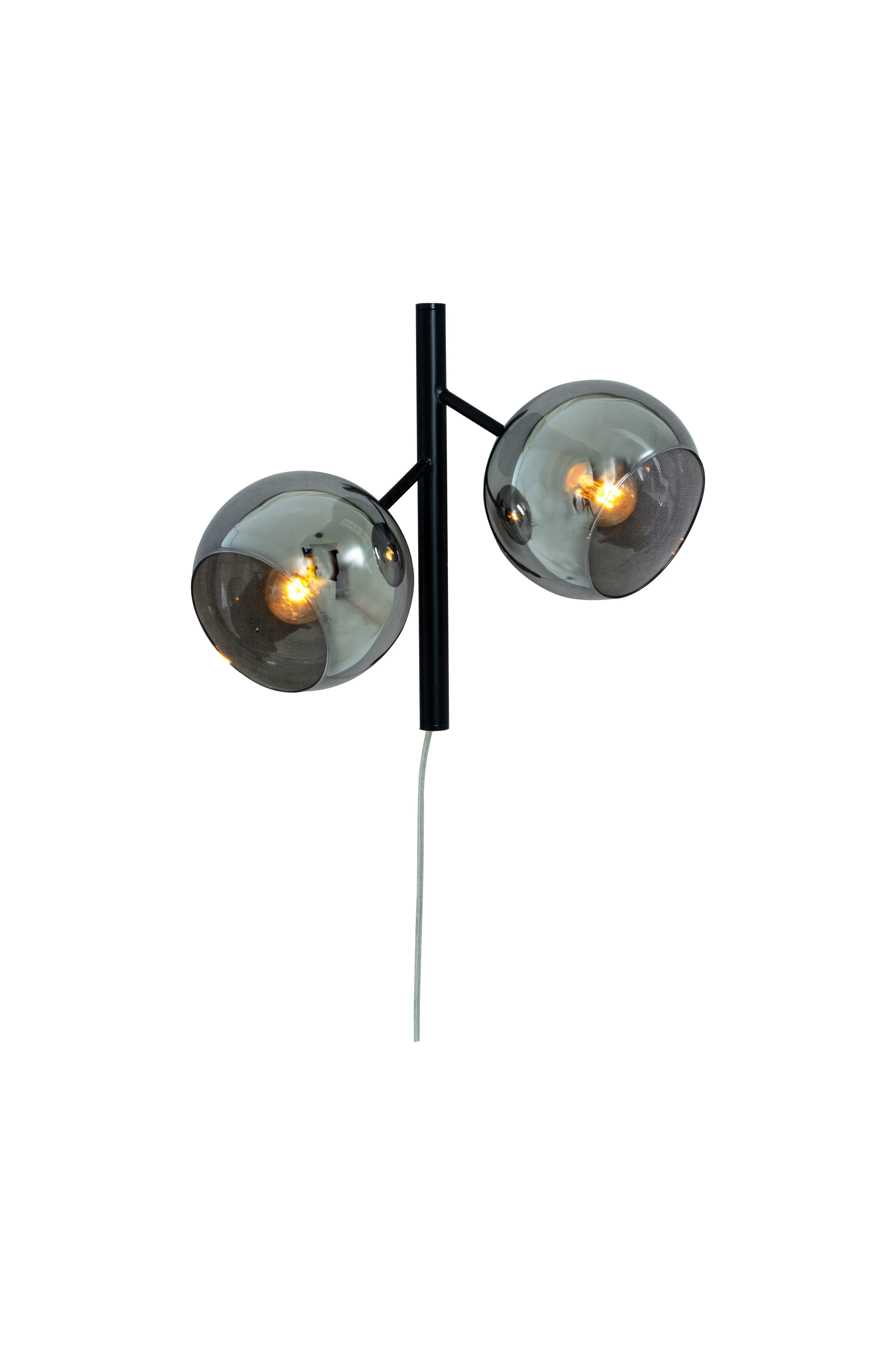 The modern wall lamp Atom with two smoke-gray glass globes is beautiful and exciting. A beautiful wall lamp that is a focal point in itself. Nice in the bedroom, hallway, living room, or kitchen.