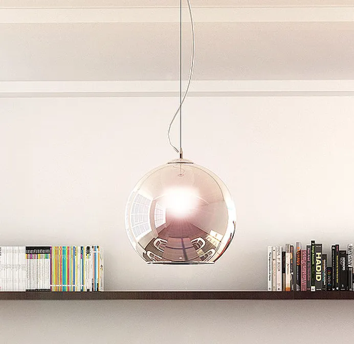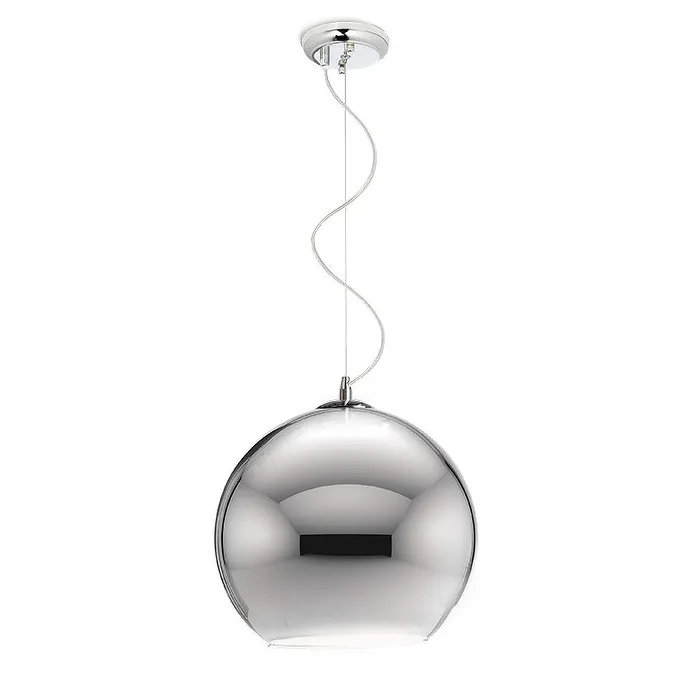 Rendl's modern Beau Monde design ceiling lamp shade is made of hand-blown chrome-colored glass. The interesting appearance of the shade is achieved by placing a thin layer of non-transparent metal on the glass. The surface of the shade contains small bubbles, making it very unique!