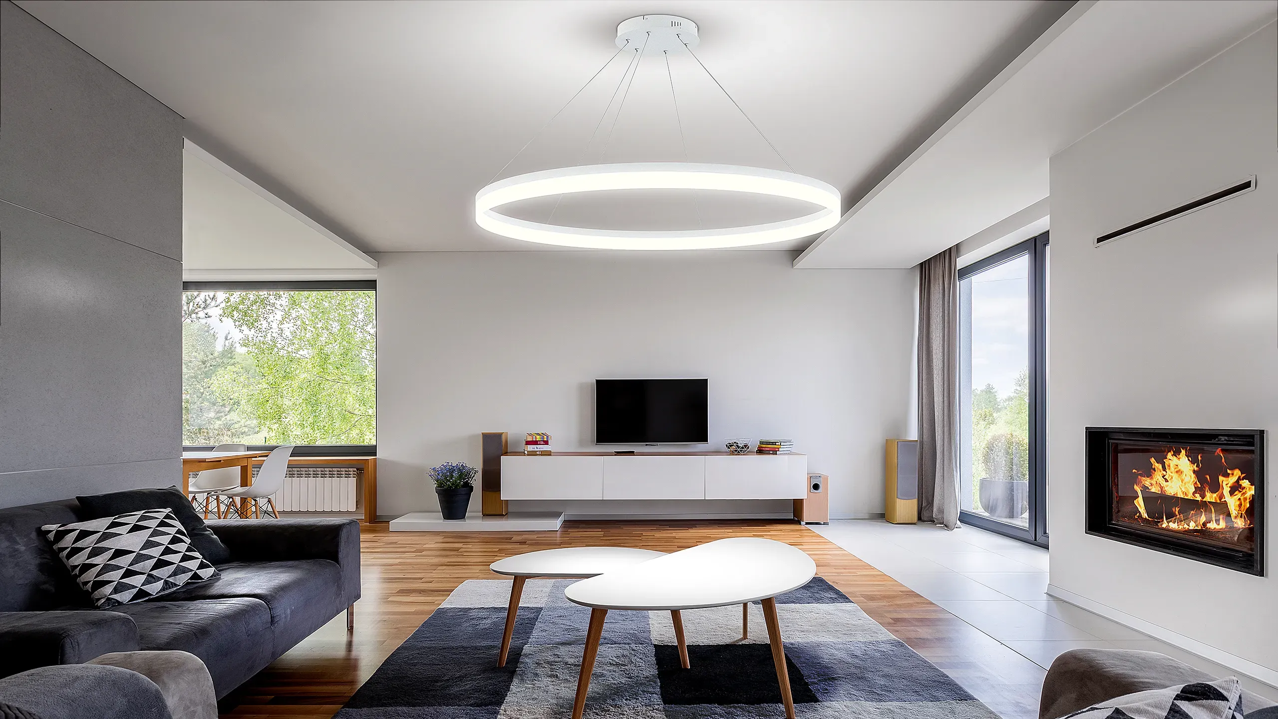 The Circulo ceiling lamp is modern and stylish. The lamp provides good lighting while being simple yet elegant. Circulo fits well in public environments but also in private homes. The round LED lamp is perfect, for example, above the meeting table, in the auditorium, or at home above the dining table where the ceiling height is high. The ceiling lamp is dimmable.