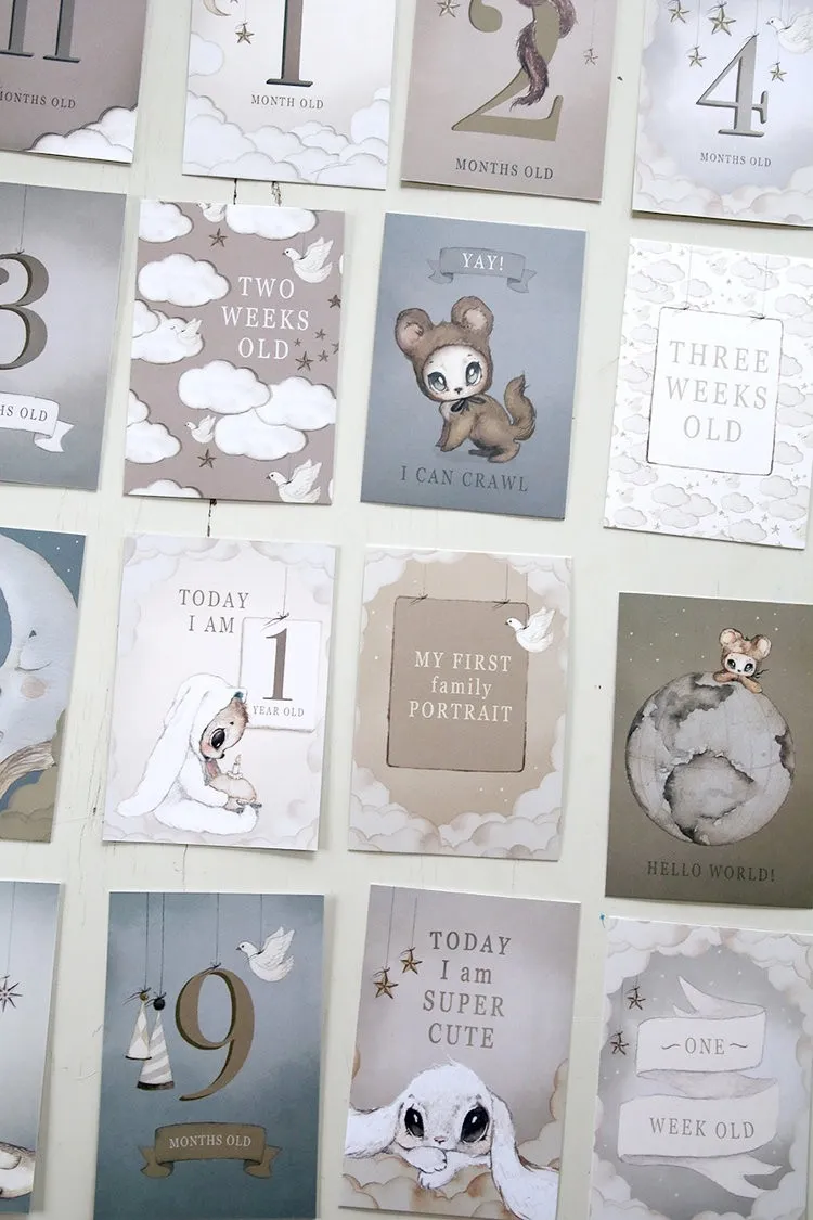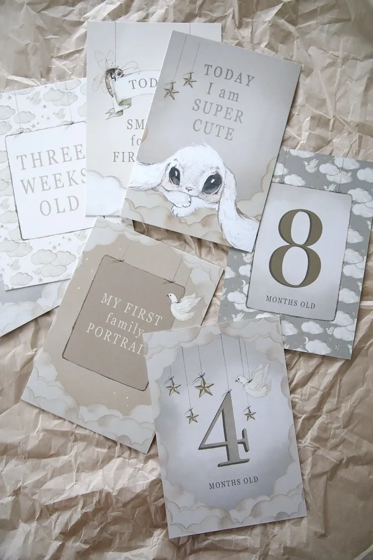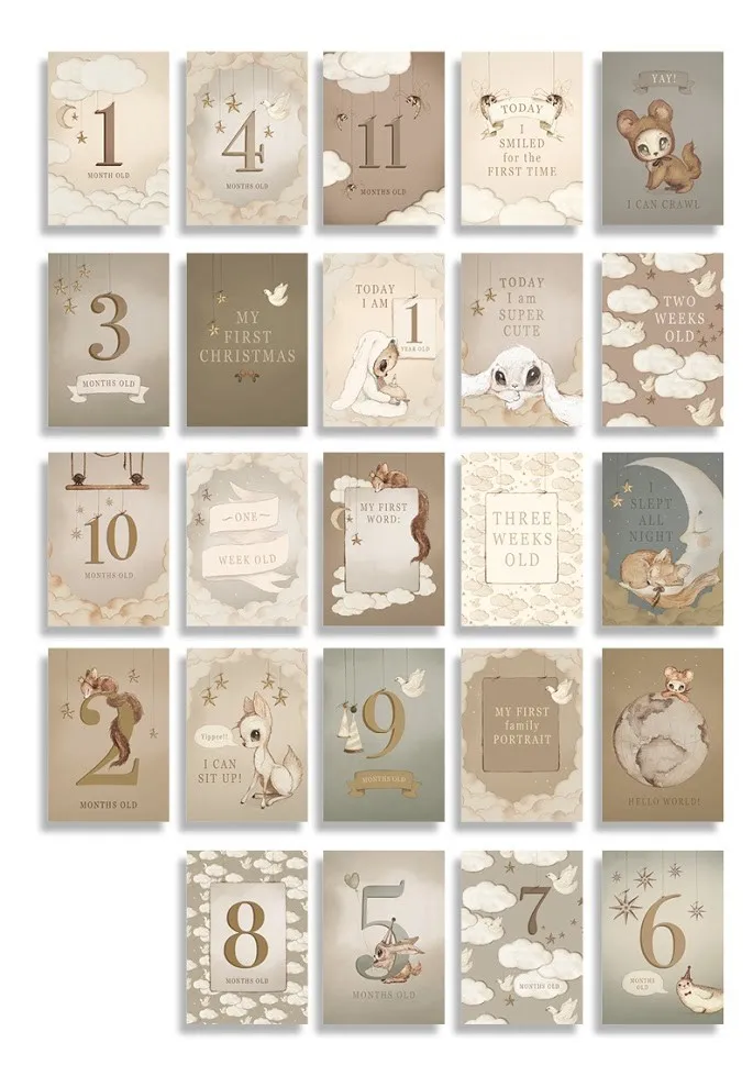 With Mrs. Mighettos Baby's First Year cards, all the special moments in a child's first year are collected in a beautiful way. The package contains 24 cards with different designs. The cards are a perfect gift for new parents.