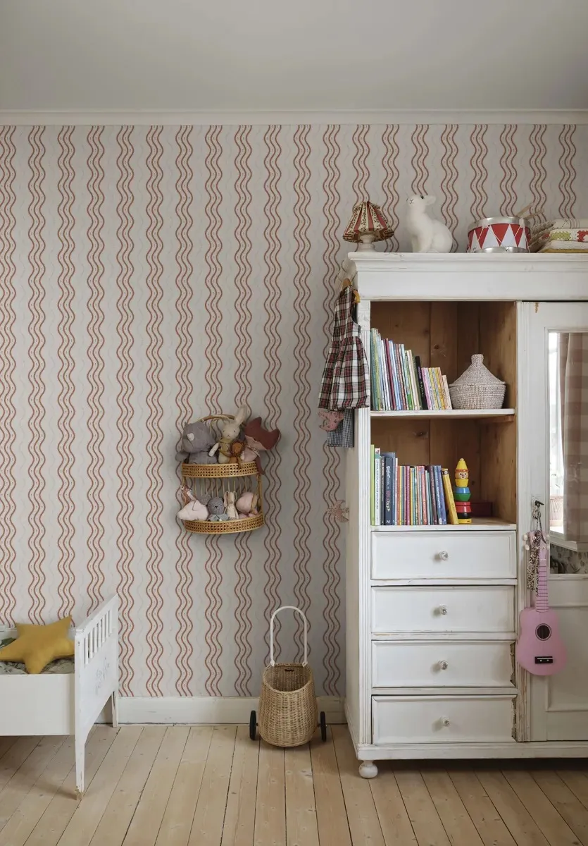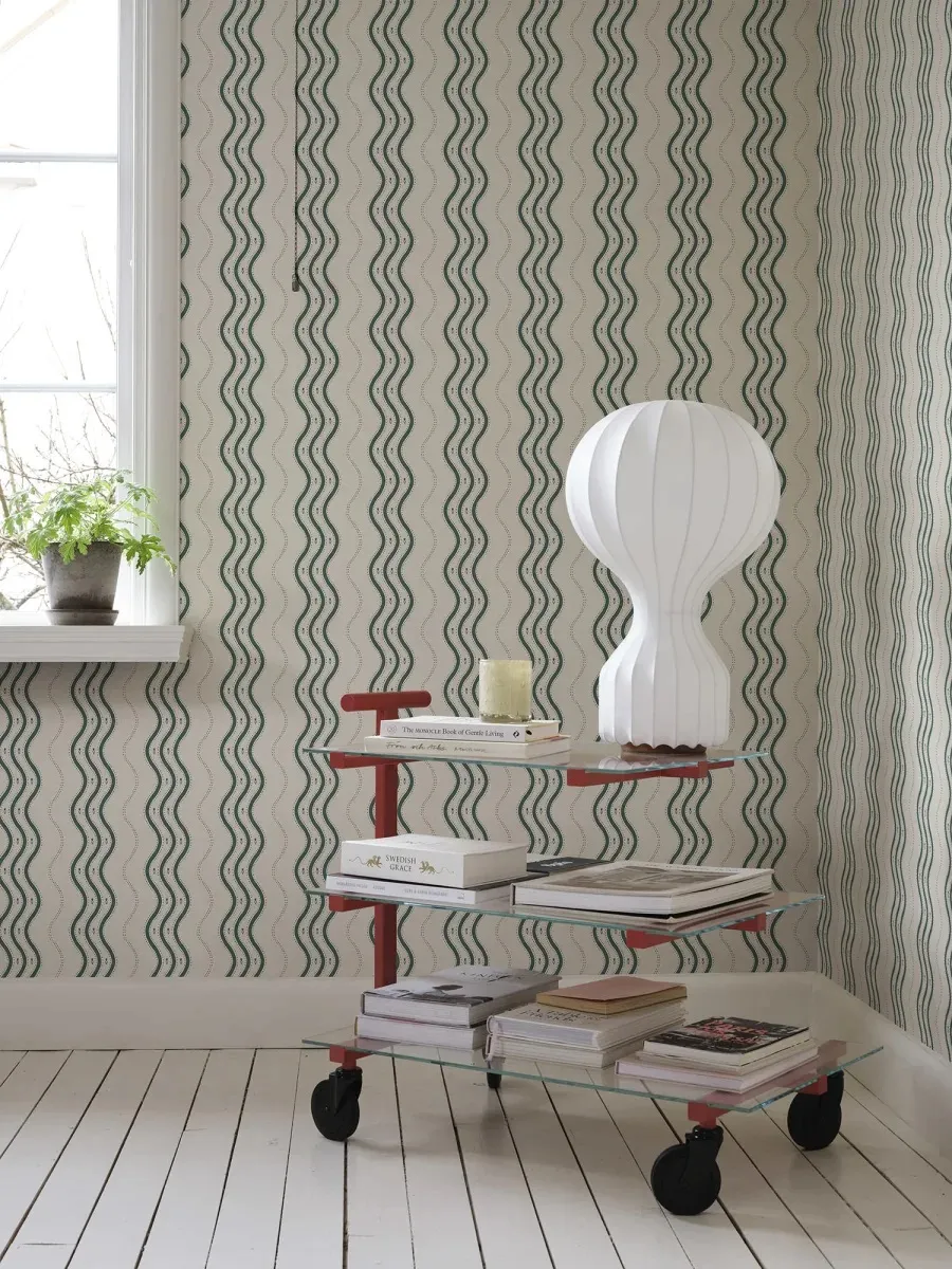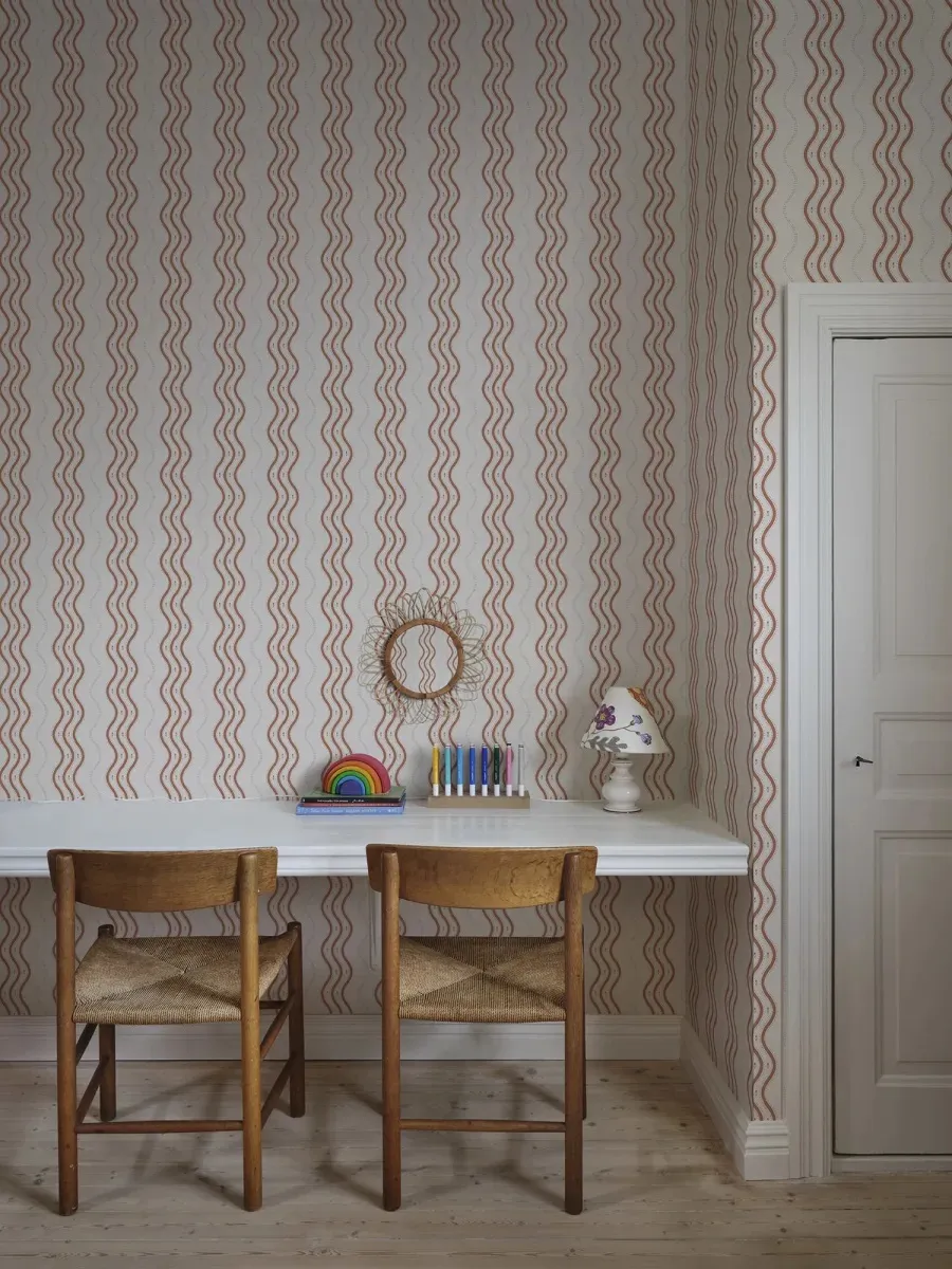 The wallpaper is created in collaboration with Johanna Bradford and features a bold striped pattern that gives your walls a unique and stylish look, without forgetting the playfulness. If you look closely at the pattern, you might notice a small crocus flower, the same flower that is also found in the Betty pattern. This wallpaper is an excellent choice when you want to add personality and sophistication to your decor.