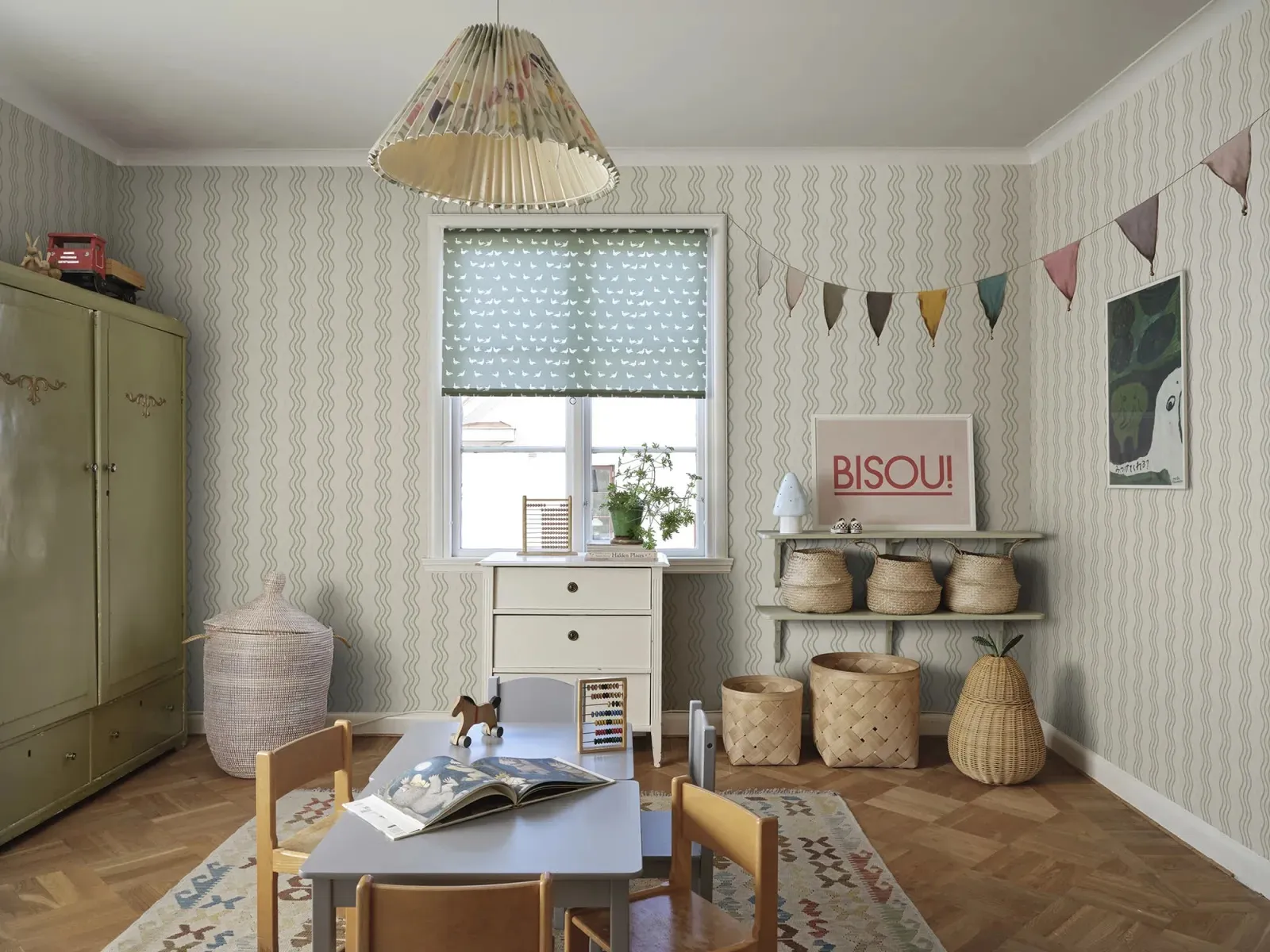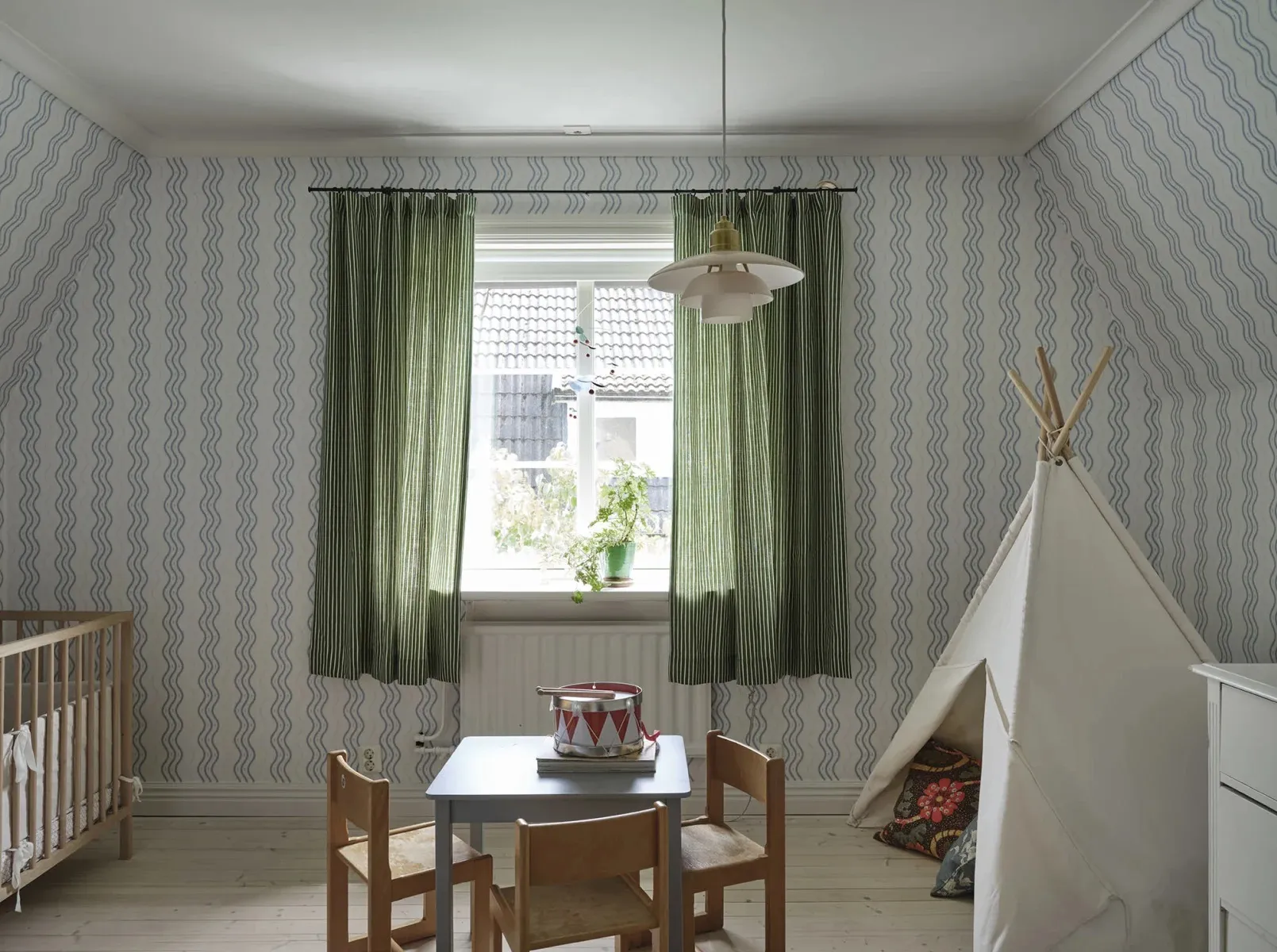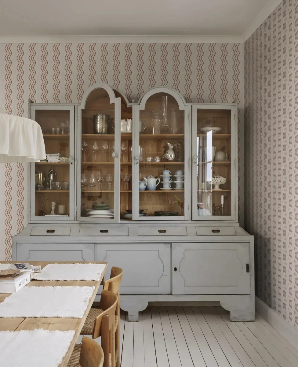 The wallpaper is created in collaboration with Johanna Bradford and features a bold striped pattern that gives your walls a unique and stylish look, without forgetting the playfulness. If you look closely at the pattern, you might notice a small crocus flower, the same flower that is also found in the Betty pattern. This wallpaper is an excellent choice when you want to add personality and sophistication to your decor.