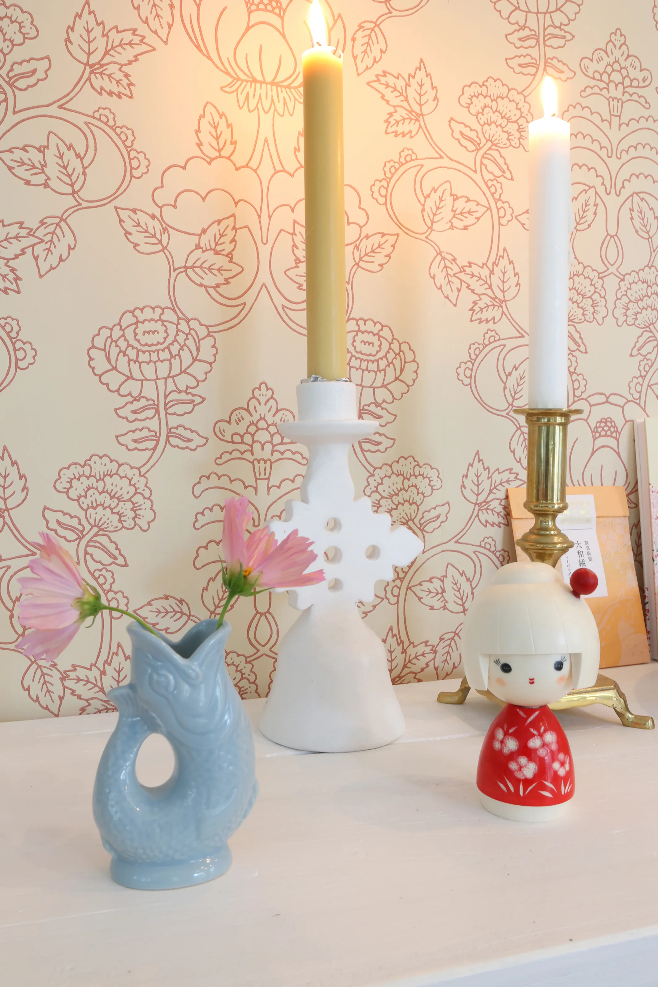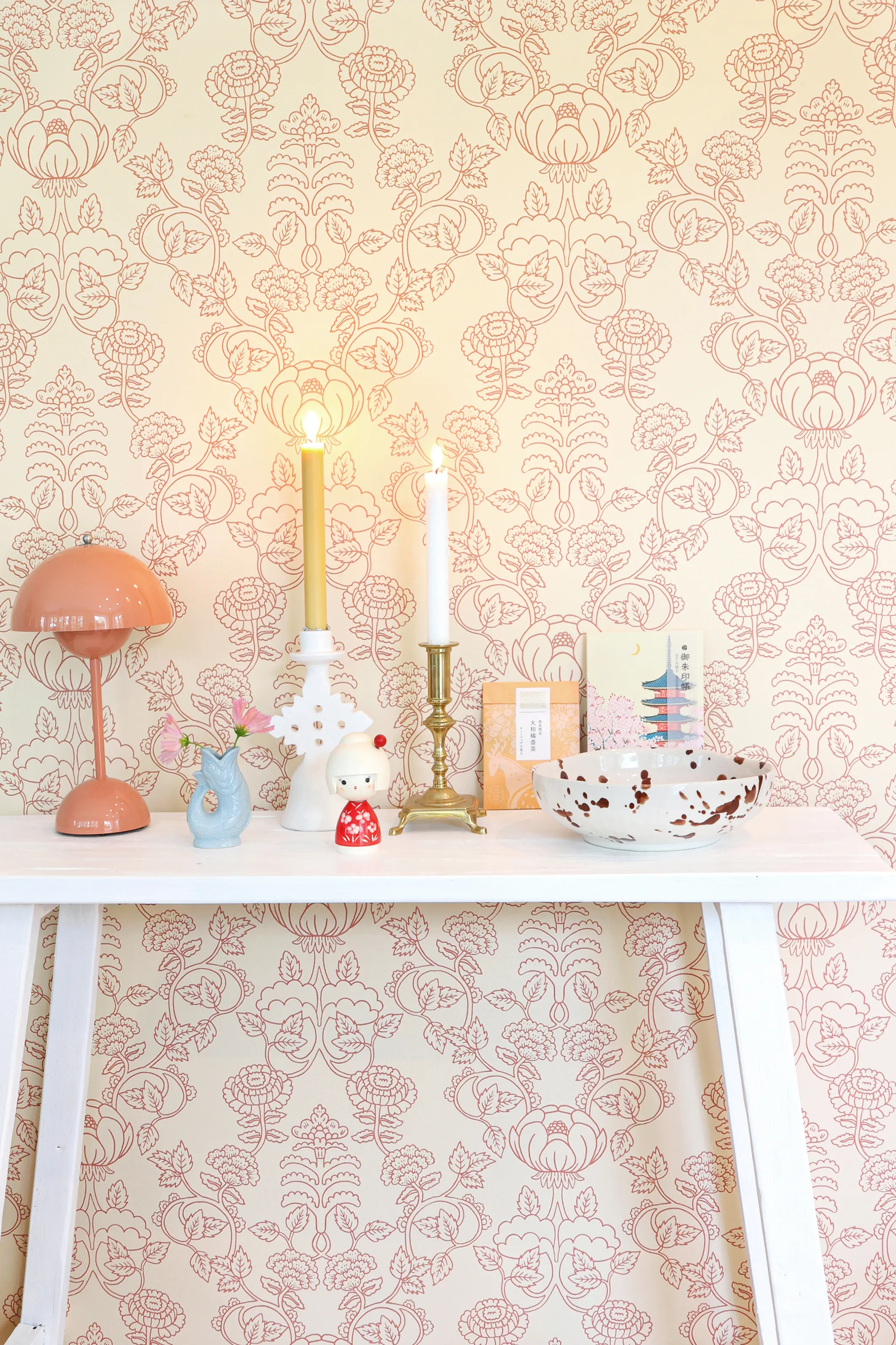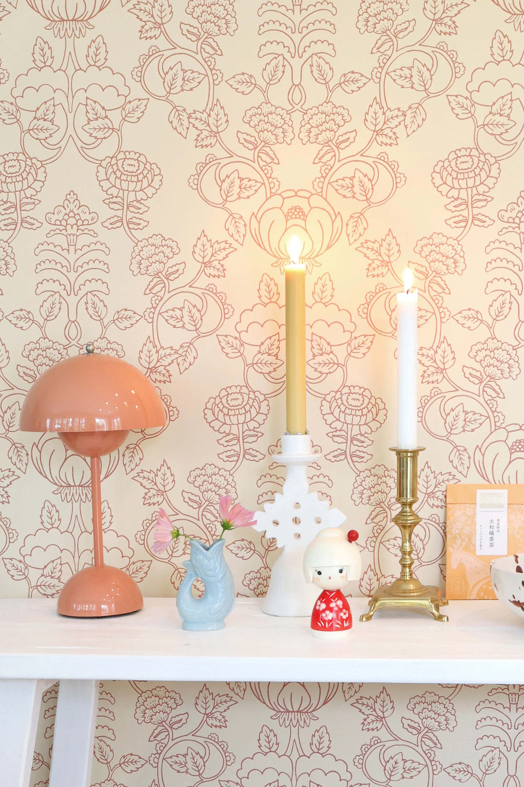 Majvillan’s Tokyo Tea wallpaper is a tribute to Japanese aesthetics – delicate, balanced, and soothing. The pattern features softly drawn tea cups, blooming branches, and organic shapes that flow together in a gentle, rhythmic harmony. The understated geometry and nature-inspired design create a serene and timeless atmosphere in any room.