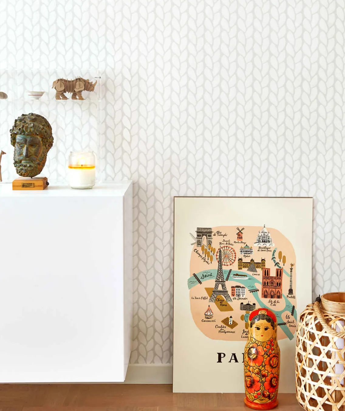 Majvillan Leya wallpaper with beautiful chain motif. The wallpaper is suitable for both children and adults. A wallpaper for the children's room, living room, bedroom, or hallway.