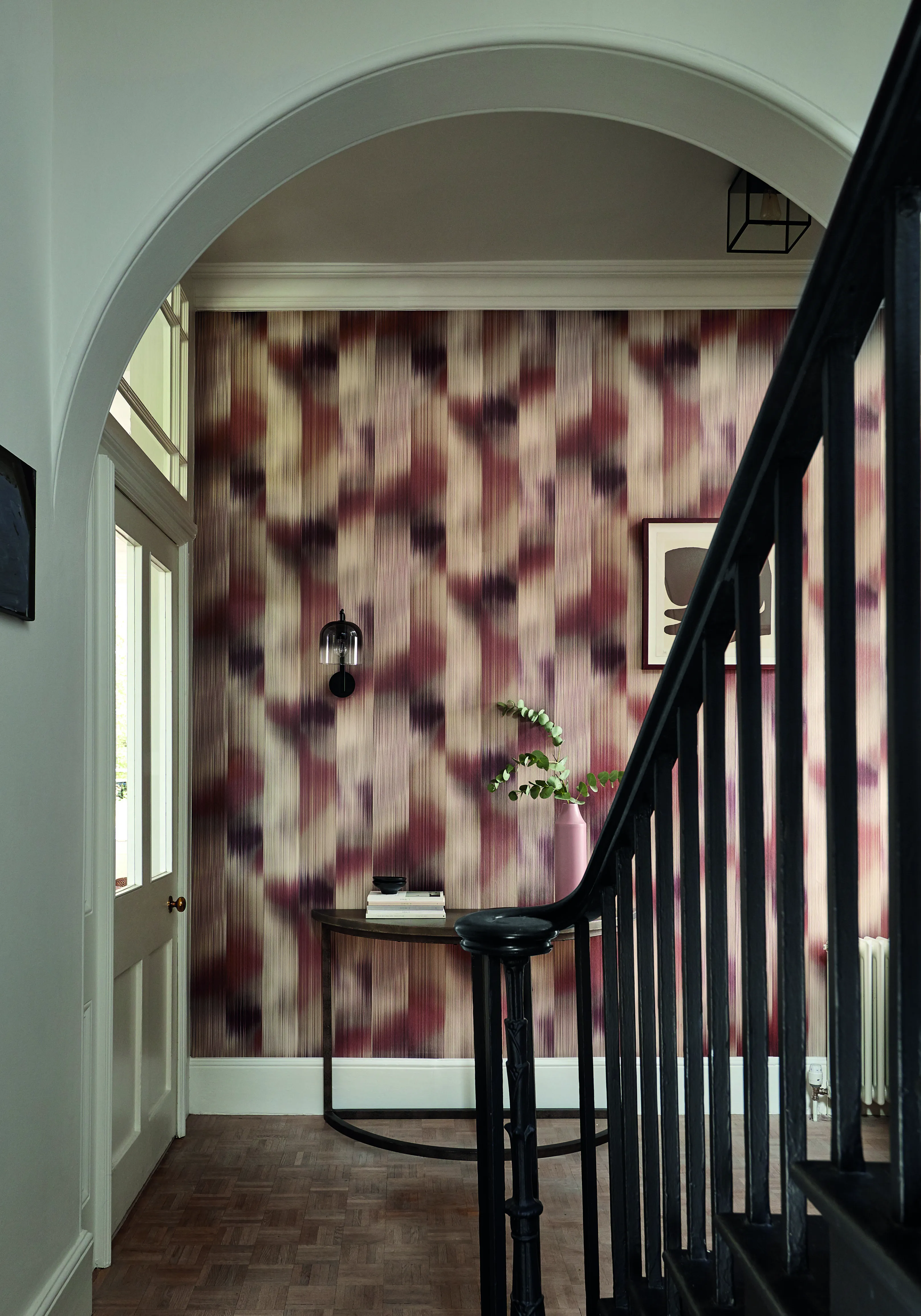 The vinyl wallpaper Oscillation has a graphic, blurry pattern. The wallpaper is reminiscent of blurred photos taken with a long exposure time. A special wallpaper that can be hung vertically or horizontally.