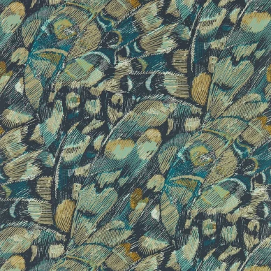 Muraltapeten Peacock Plumage is densely patterned with turquoise peacock feathers. A fine mural wallpaper for the living room, home office, or dining room.