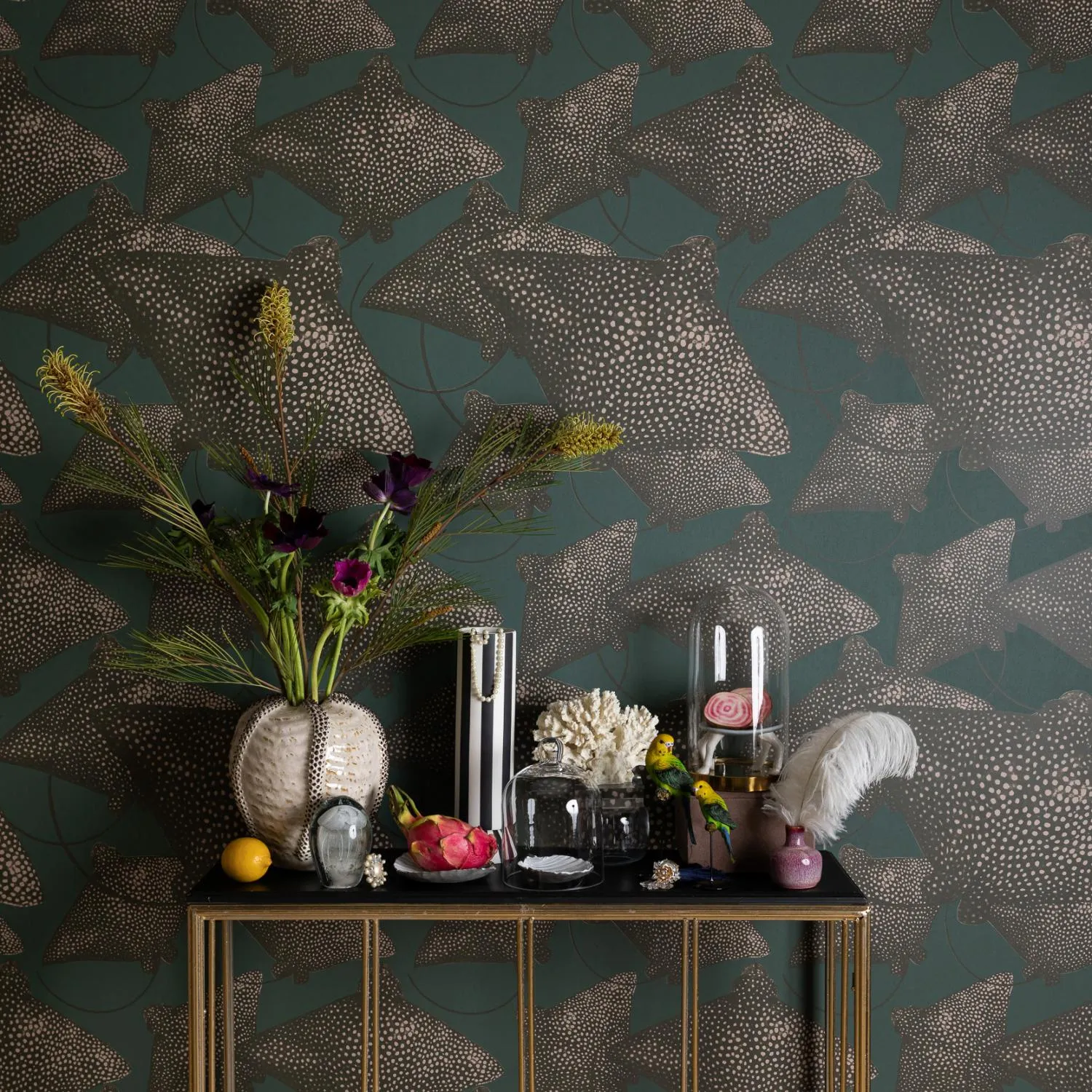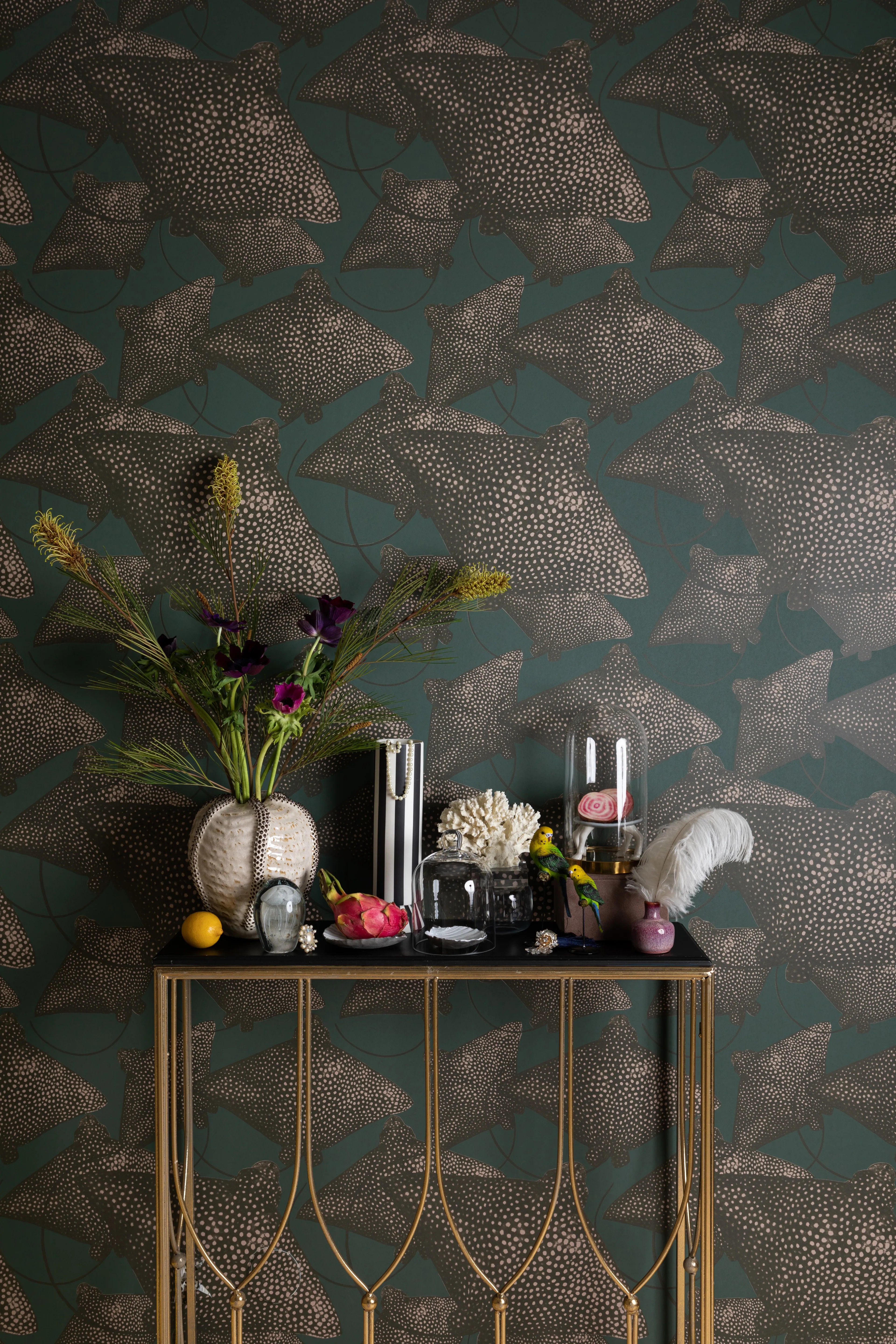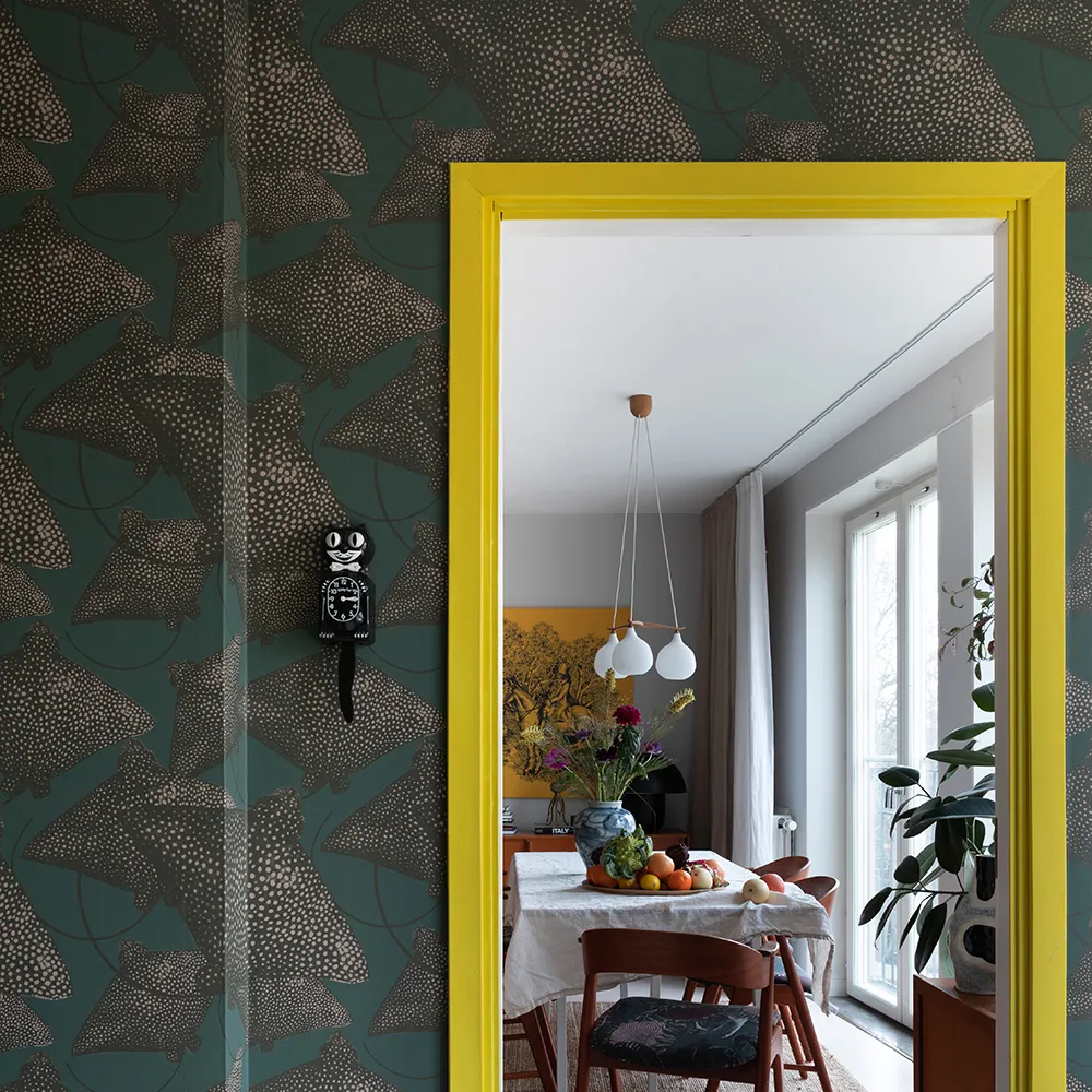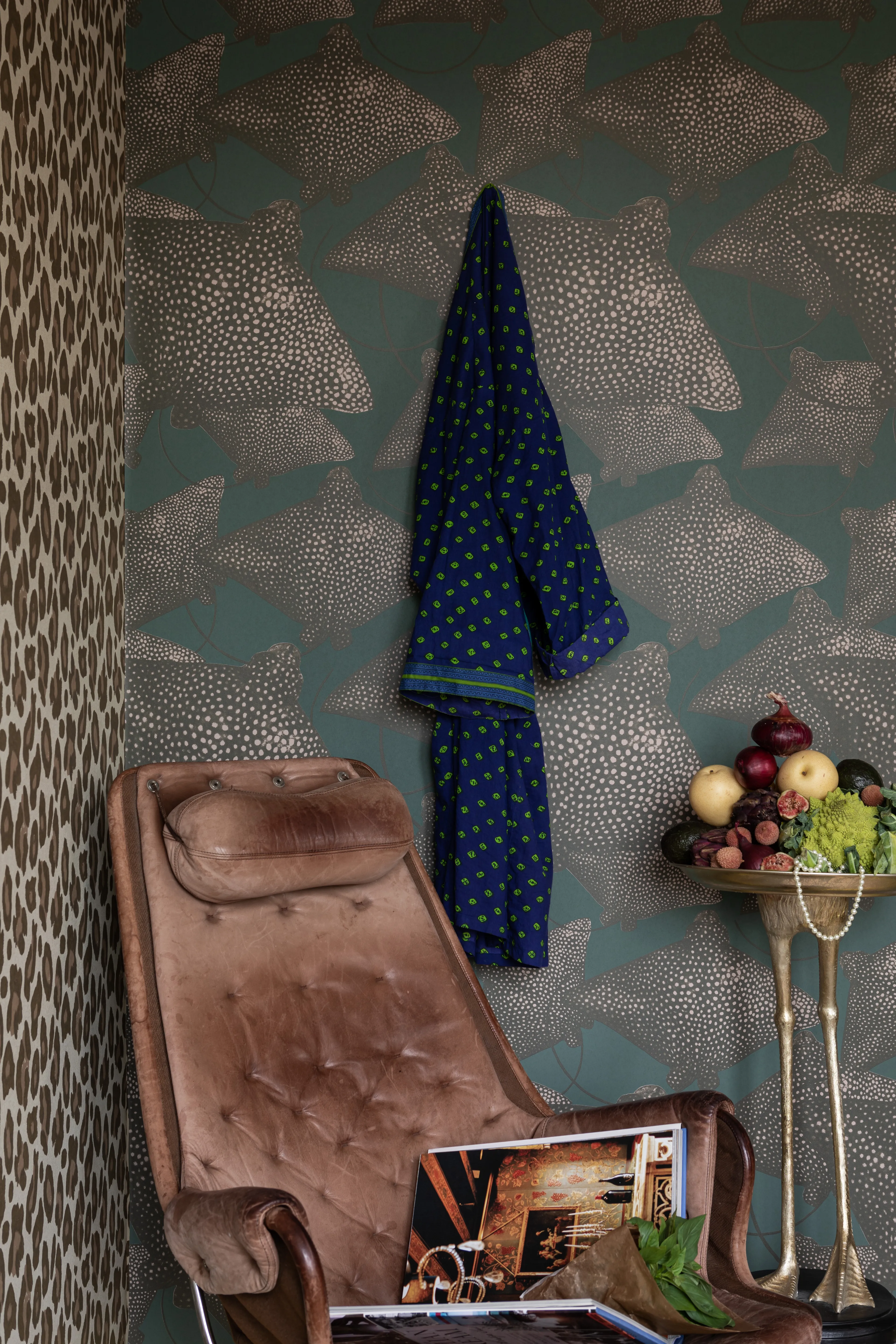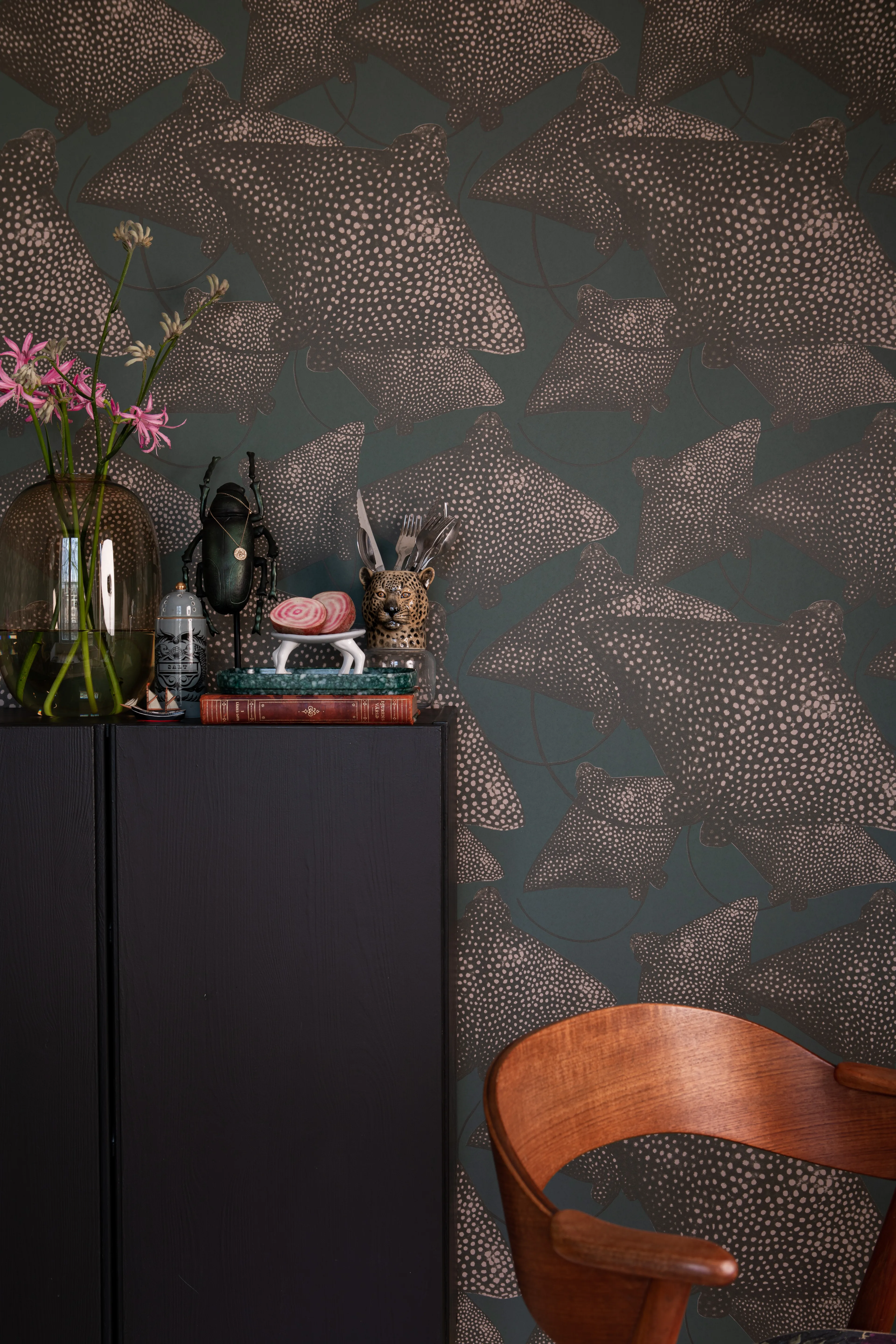 The tough wallpaper Rock On with large, swimming manta rays is cool and three-dimensional. An exciting wallpaper that stands out, suitable for youth rooms, bathrooms, or why not as an exclamation point in the living room. Lisa Bengtsson suggests wallpapering the ceiling with this, super cool!