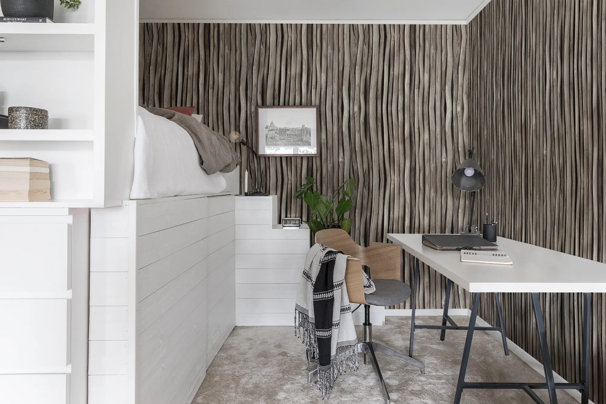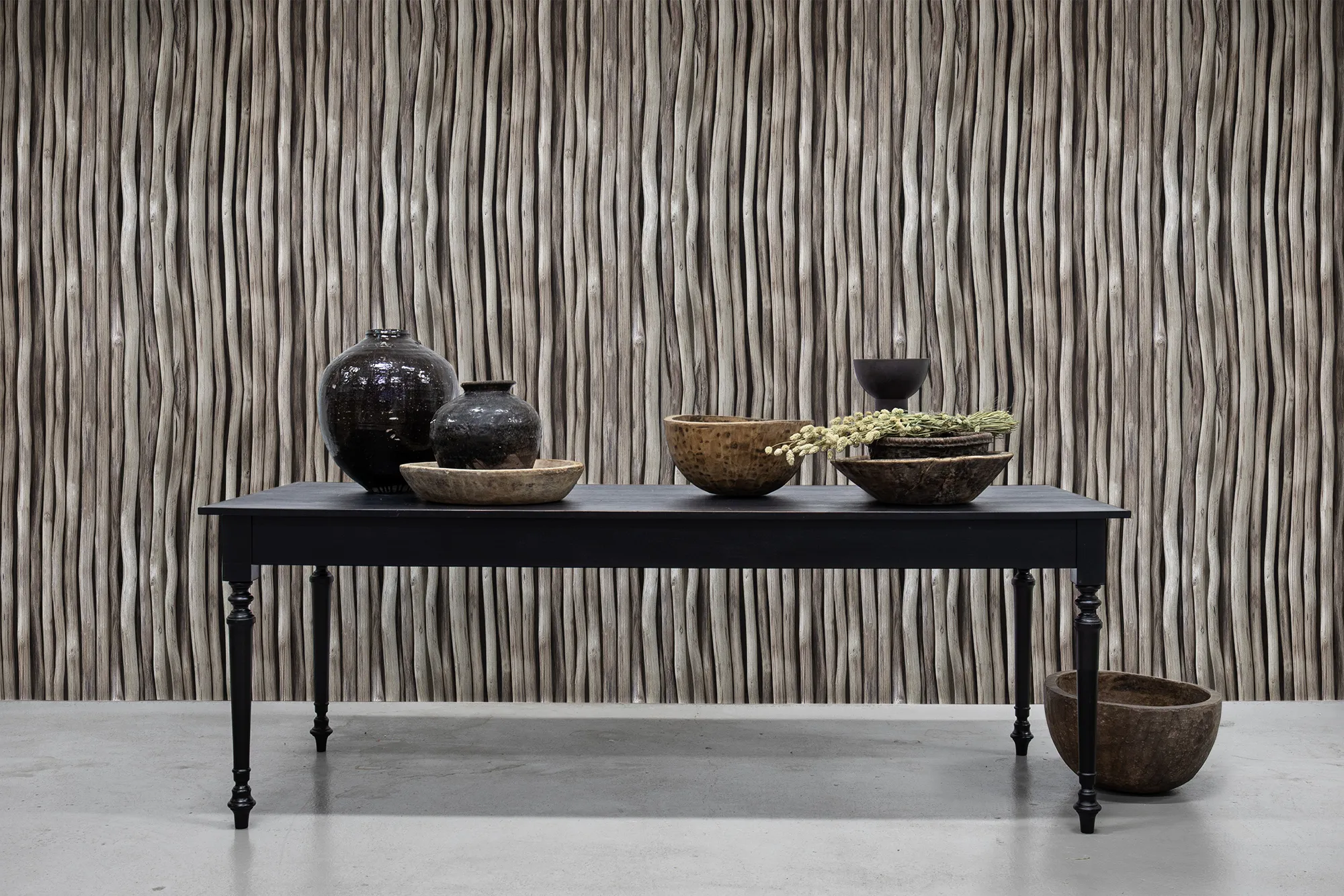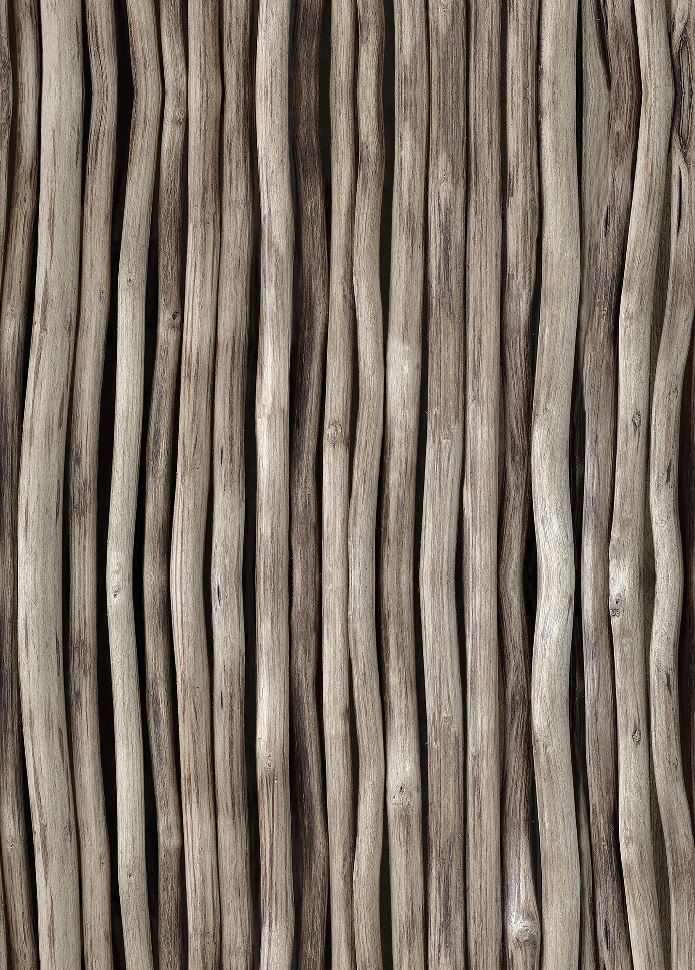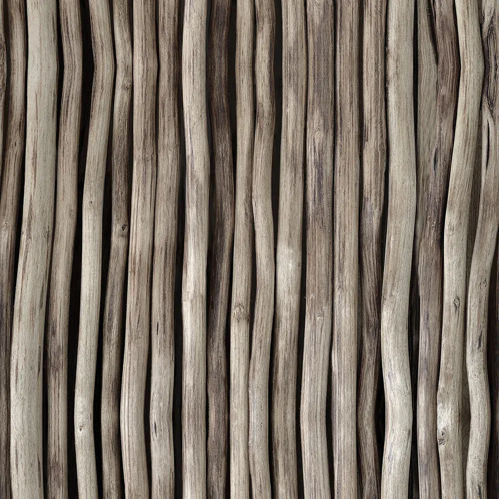 Muraltapeten Silence is harmonious yet vibrant, with tightly packed driftwood in a striped pattern. A calming mural wallpaper for the home office or living room.