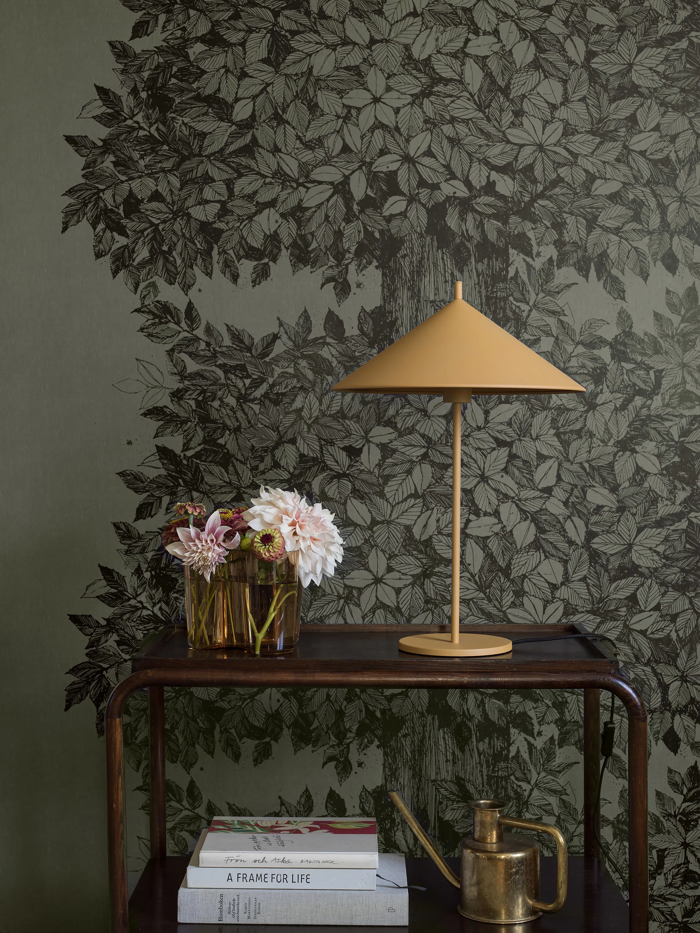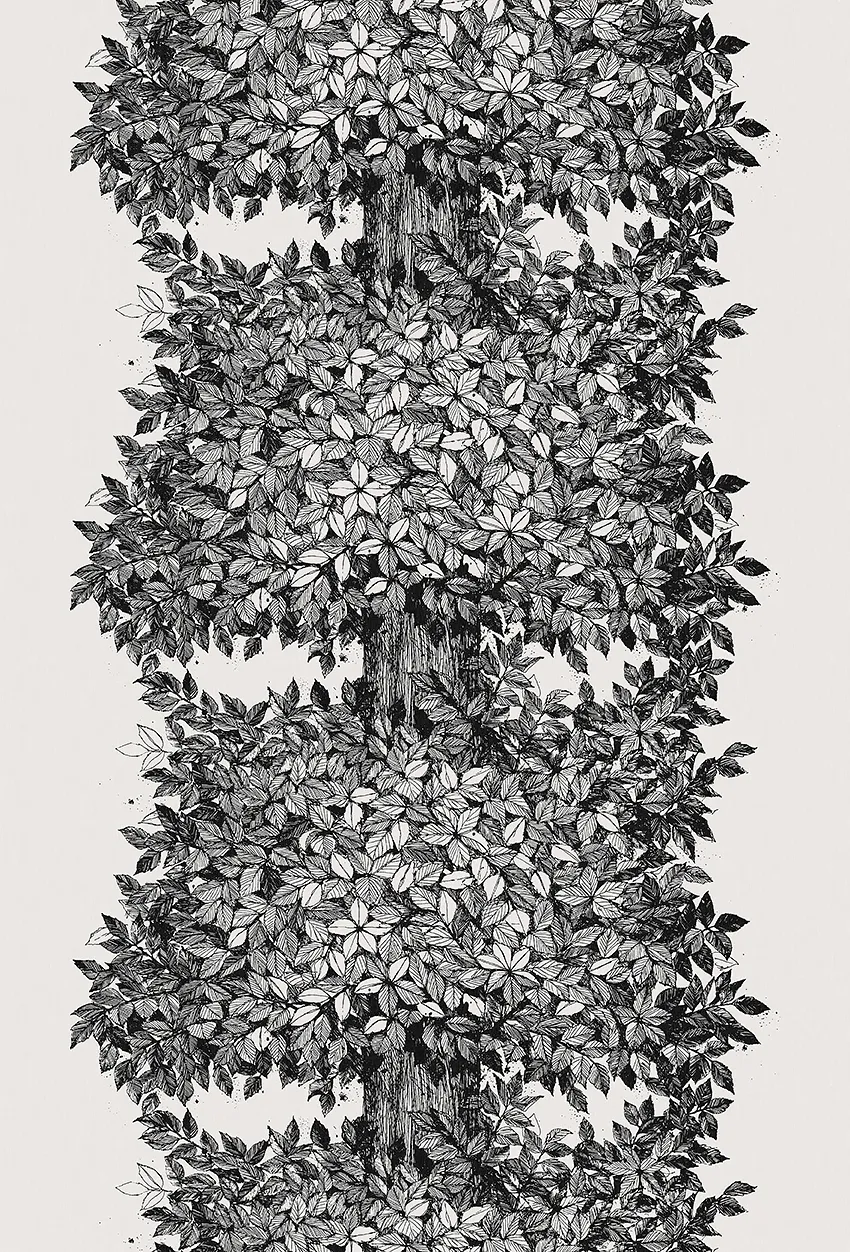 Tree wallpaper Hassel by Viola Gråsten is a Scandinavian design classic. The wallpaper has a discreet linen texture, is available in three color options, and fits in living rooms, dining rooms, and hallways. The pattern is 180x265 cm and is delivered in four 45 cm wide strips.