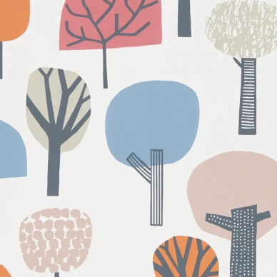 Boråstapeter Pottery kokoelmasta Scandinavian Designers II on värikäs designtapettiklassikko. Tässä aavistuksen retrossa kuviotapetissa on kuvattu suunnittelijan uraa keramiikkataiteilijana.