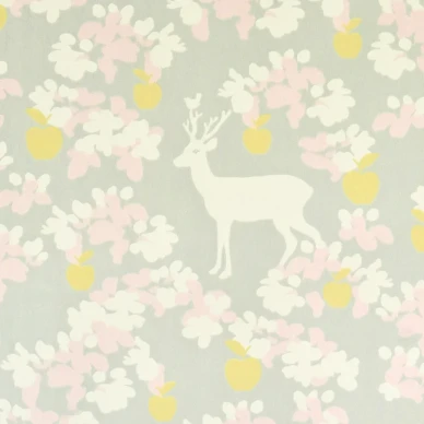 Majvillan tapetti Little Light jossa kukkia ja valkoinen pupu. Pirteä ja värikäs lastenhuoneentapetti!