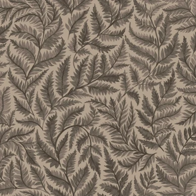 Suurikuvoinen lehtitapetti Malassa on kauniin yksikertainen kuvointi, mutta säväkkyyttä siihen tuo metallin hohtoiset yksityiskohdat. Kämmenlehdet on aseteltu kauniisti lomittain, jotta tapetti on rauhallinen.