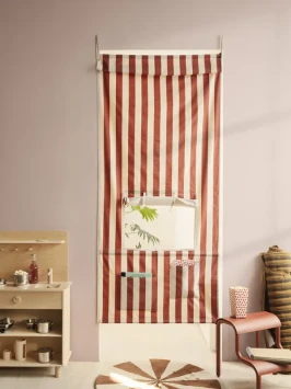 Kids Kiosk från Ferm Living är ett roligt tillskott till leksaksutbudet. Häng upp kiosken i dörröppningen till barnrummet och affärsverksamheten kan starta. Vill du köpa ett äpple eller en bulle?
