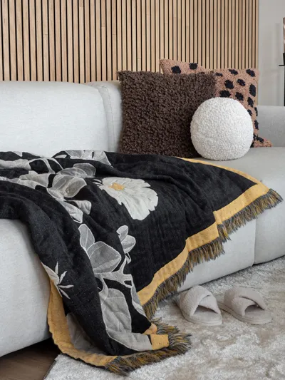 Johanna filt är en fantastisk och varm filt tillverkad i Finland. De delikata äppelblommorna gör pläden till ett konstverk, både på soffans kant och på väggen.