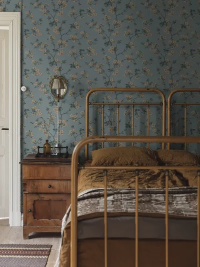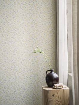 Luftiga tapeten Ängsblomma har en matt yta. Mönstret skapades 1946 och påminner om gammalt kinesiskt finporslin. Tapeten fås i fyra färger.