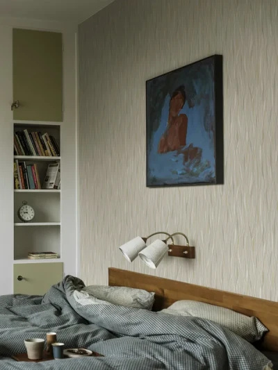 Tapeten Haväng är grafisk med mjuka vågor – eller böljande sädesfält. Tapeten fås i fem milda färgalternativ.