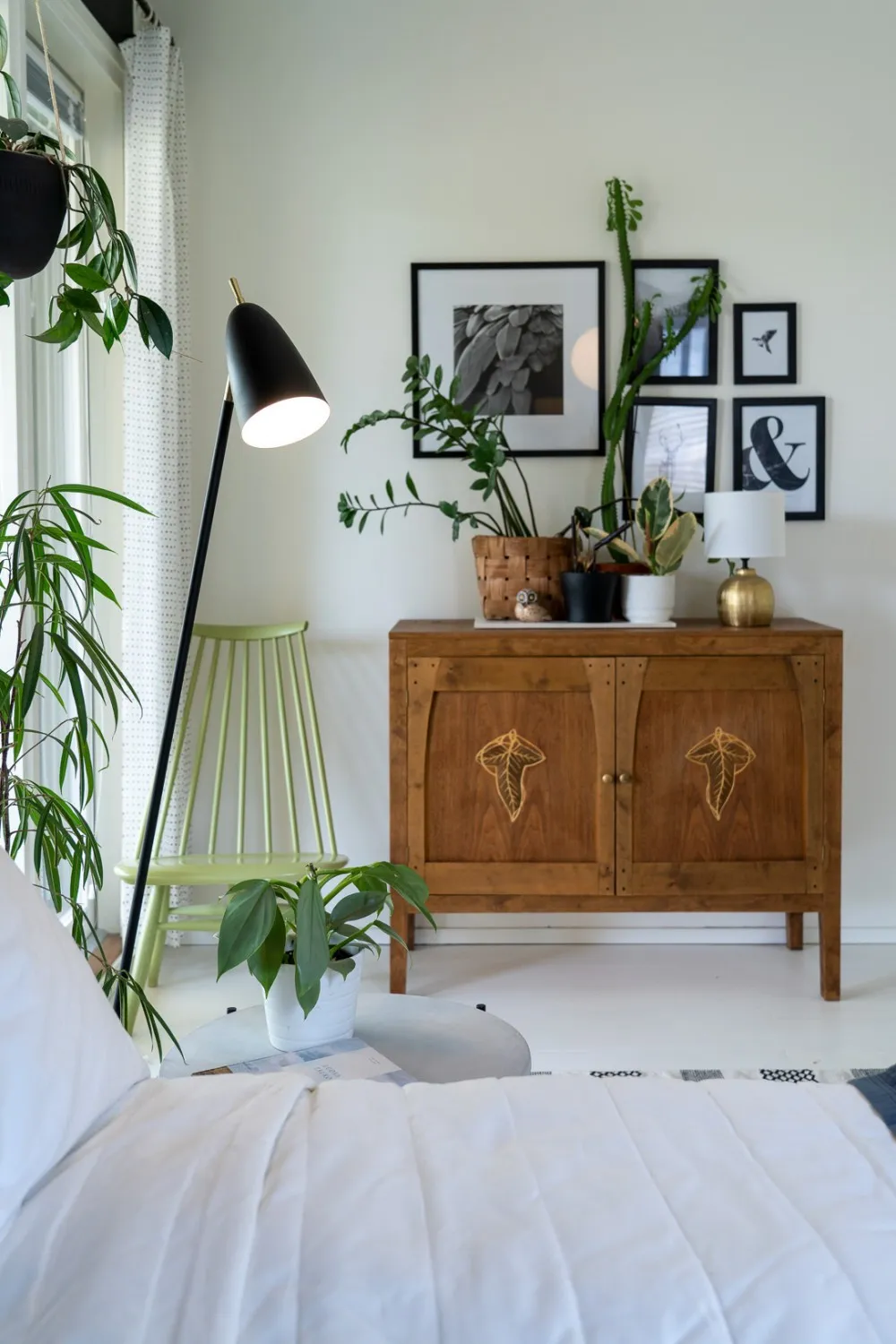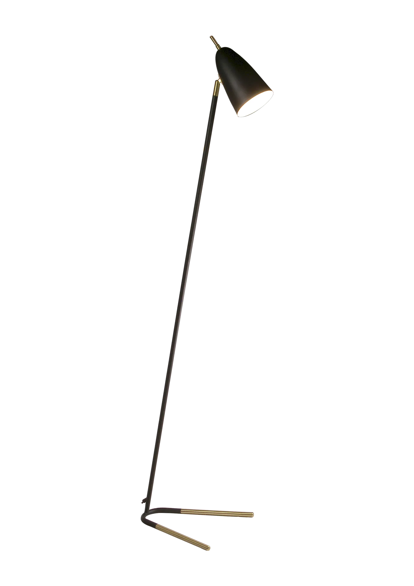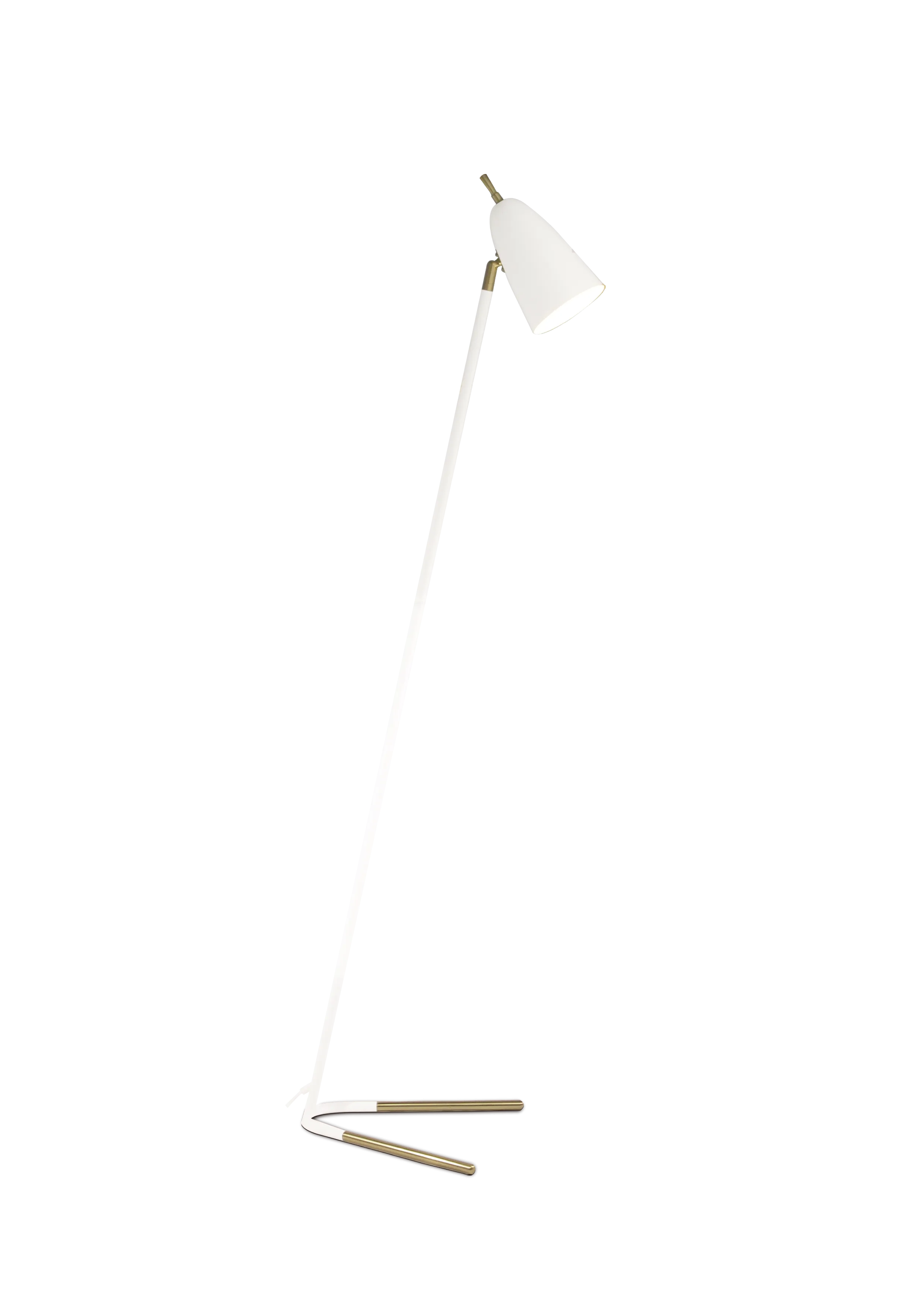 Aiden modern golvlampa från Sessak. Den vackra golvlampan finns i svart eller vitt med mässingsdetaljer.