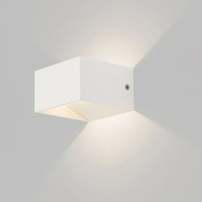 Dido är en dubbelriktiad fyrkantig vägglampa av vitmålad aluminium. Lampan här en kraftfull LED-ljuskälla.