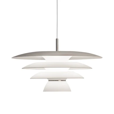 Taklampan Epsilon med hiss är en klassiker med tre skärmar. Lampan kan höjas och sänkas och sprider skön stämning och bländar inte. Ljuset fördelas fint mellan skärmarna och är en stämningshöjare i vilket rum som helst. Perfekt ovanför matbord eller vardagsrumsbord Dekorringar i både matt mässing och krom medföljer, så du kan välja den som passar bäst.