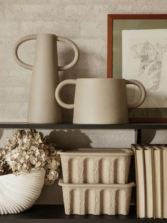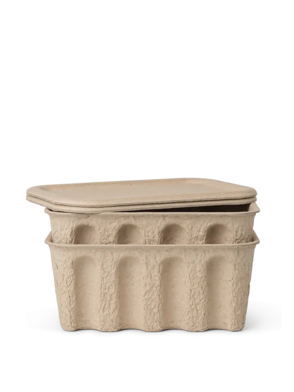 Paper Pulp Box liten - säljes i set om två. Tillverkad av 100% återvunnet papper utgör dessa formpressade förvaringslådor ett av de mest ekologiska förvaringslösningarna på marknaden just nu. Tidlös och stapelbar design från Ferm Living gör dessa inte bara praktiska och miljövänliga utan även snygga.
