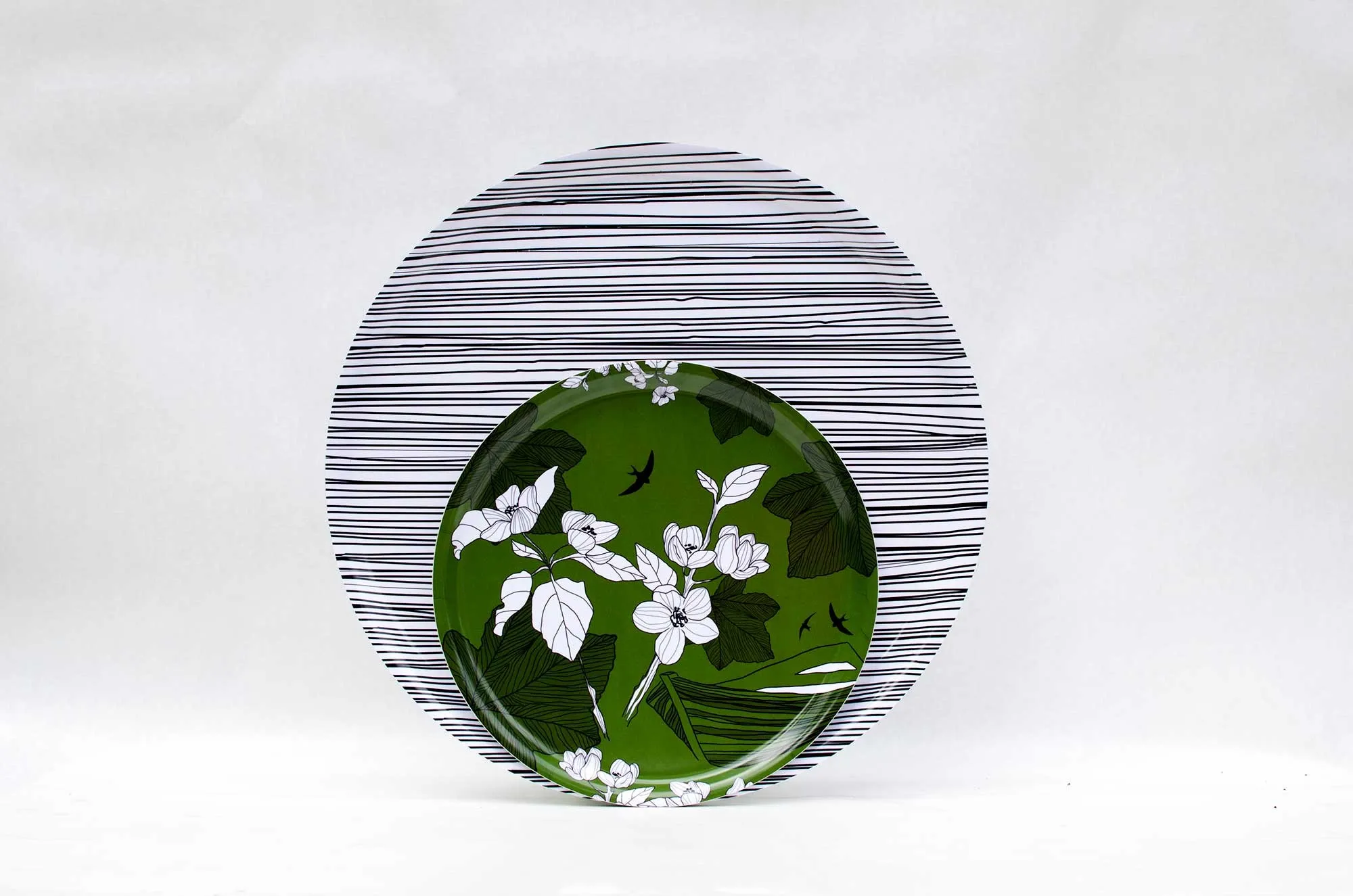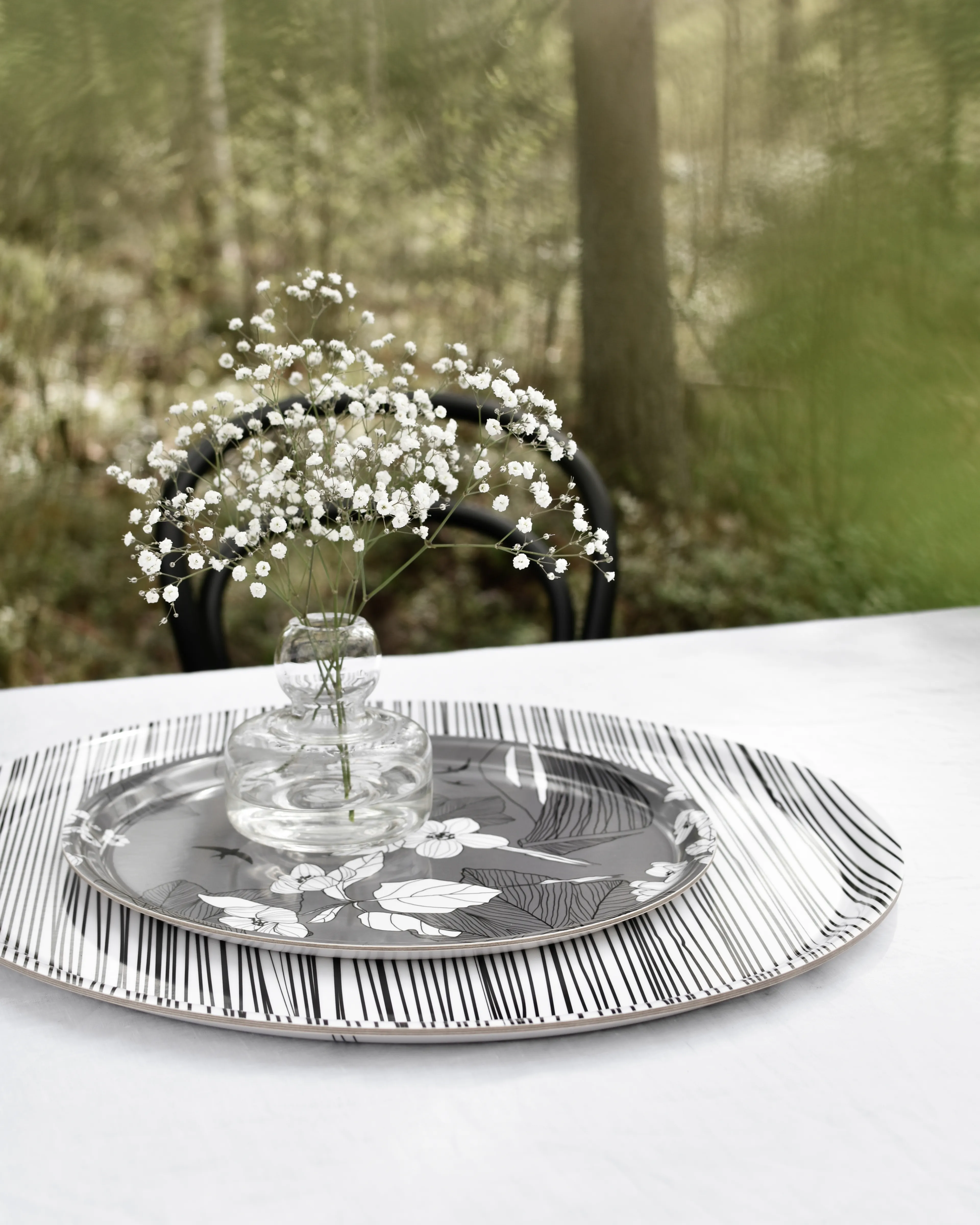 Den svartvita brickan Svedjehamn har hämtat sin inspiration från den österbottniska skärgården. Svedjehamn brickan tillhör Ostrobothnia-serien, skapad av Sofie Staffans-Lytz.