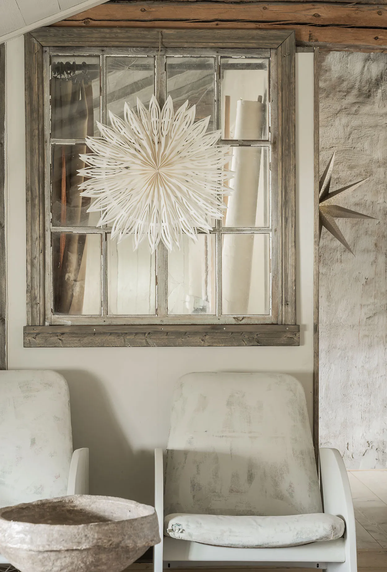 Watt & Veken vackra julstjärna Is är vit med ett vackert mönster. Stjärnan är handgjord. Passar både i fönstret och på väggen. Julstjärnan levereras i en praktisk låda, så att du kan spara din favorit år efter år.