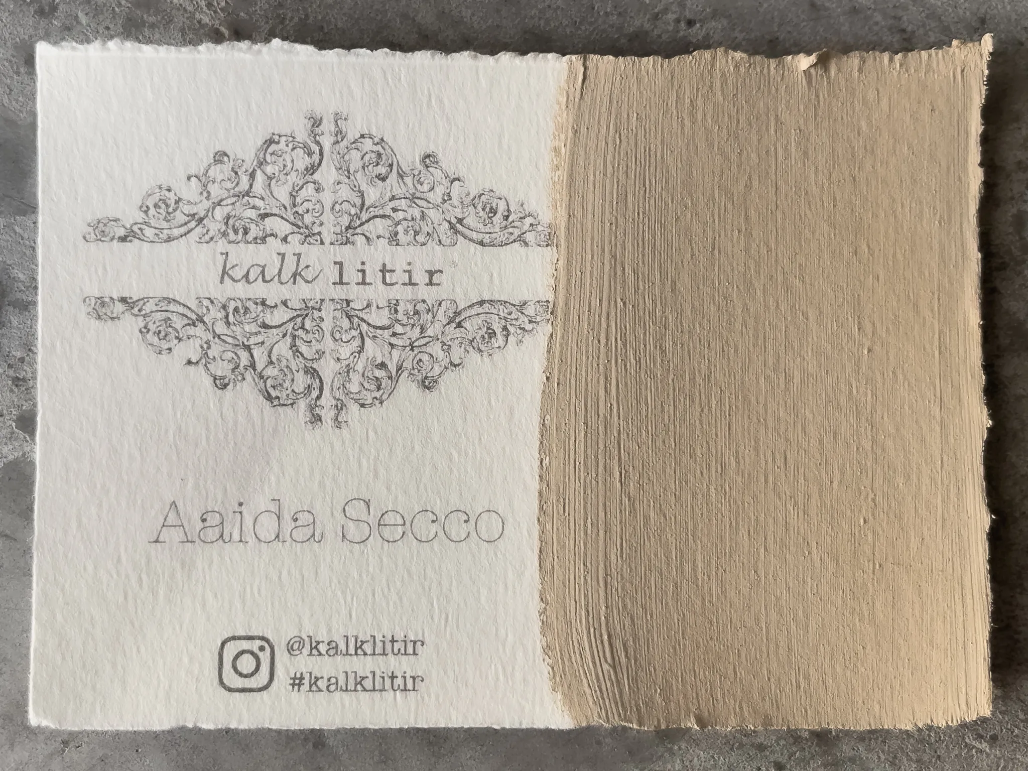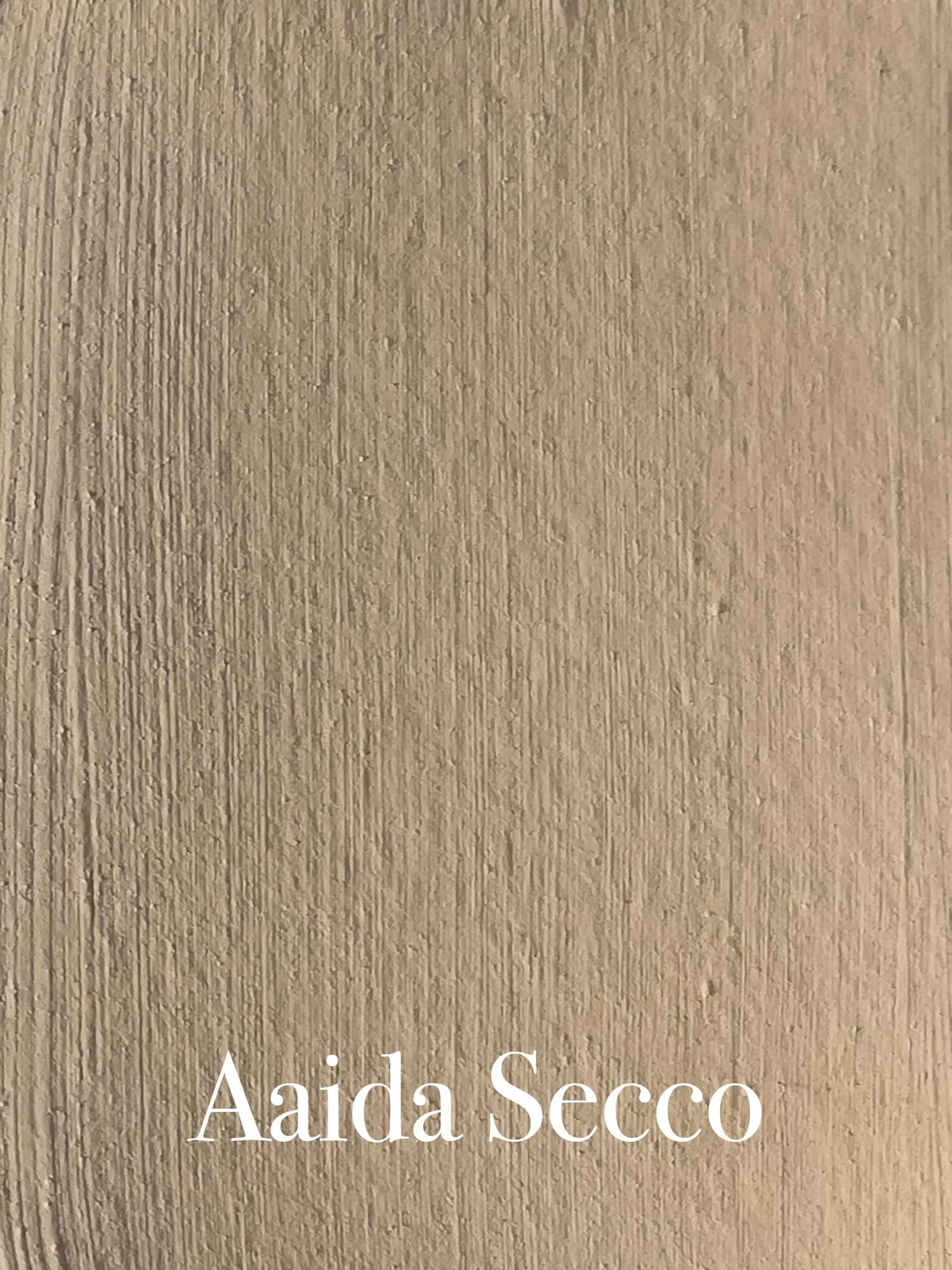 Kalkfärgen Aaida Secco är en ekologisk isländsk kalkfärg från Kalklitir med naturliga mineraler och pigment. Kalkfärgen ger en levande, 100 procent matt yta med betongkänsla. Färgen andas och är luktfri. Aaida Secco är en beige färg med gula undertoner.