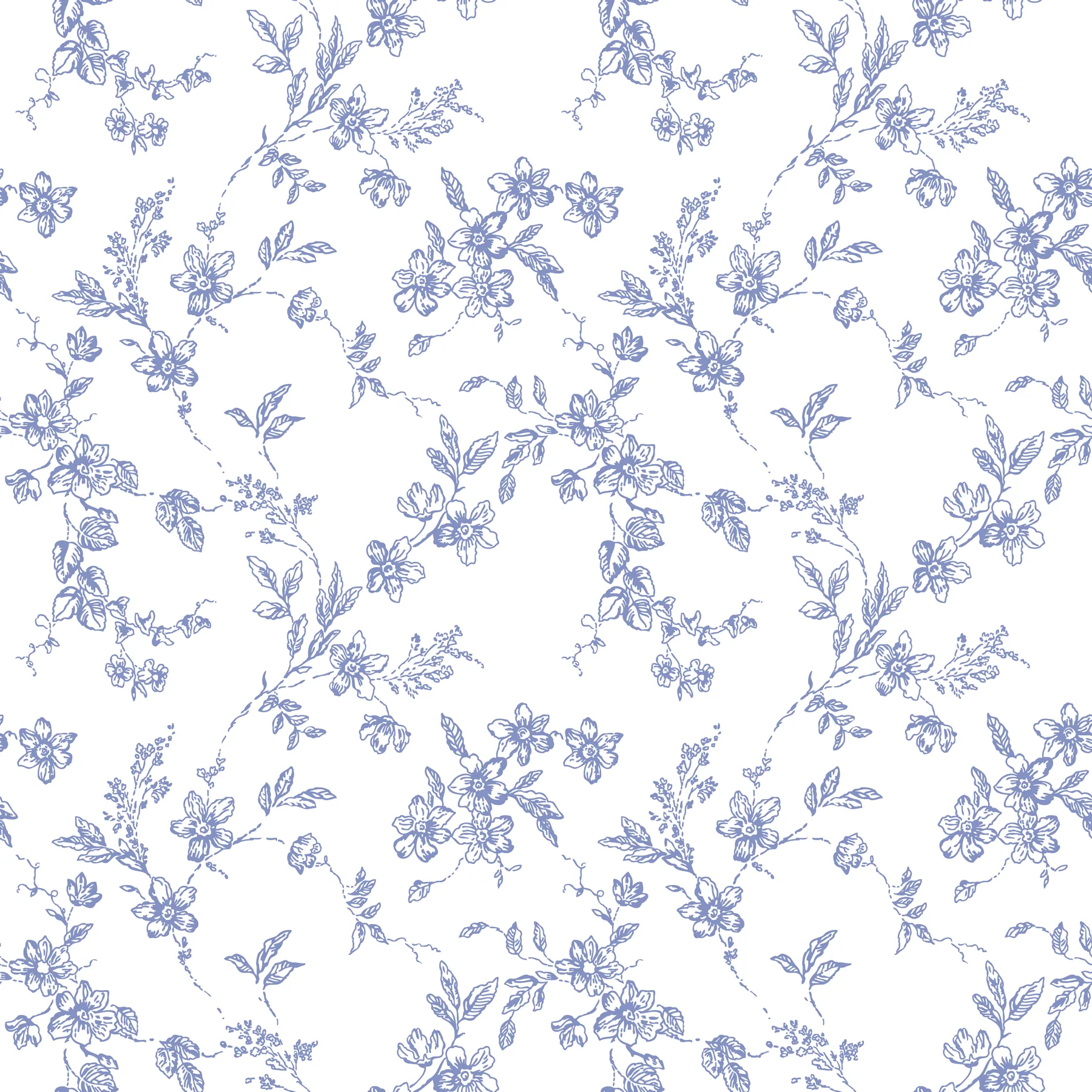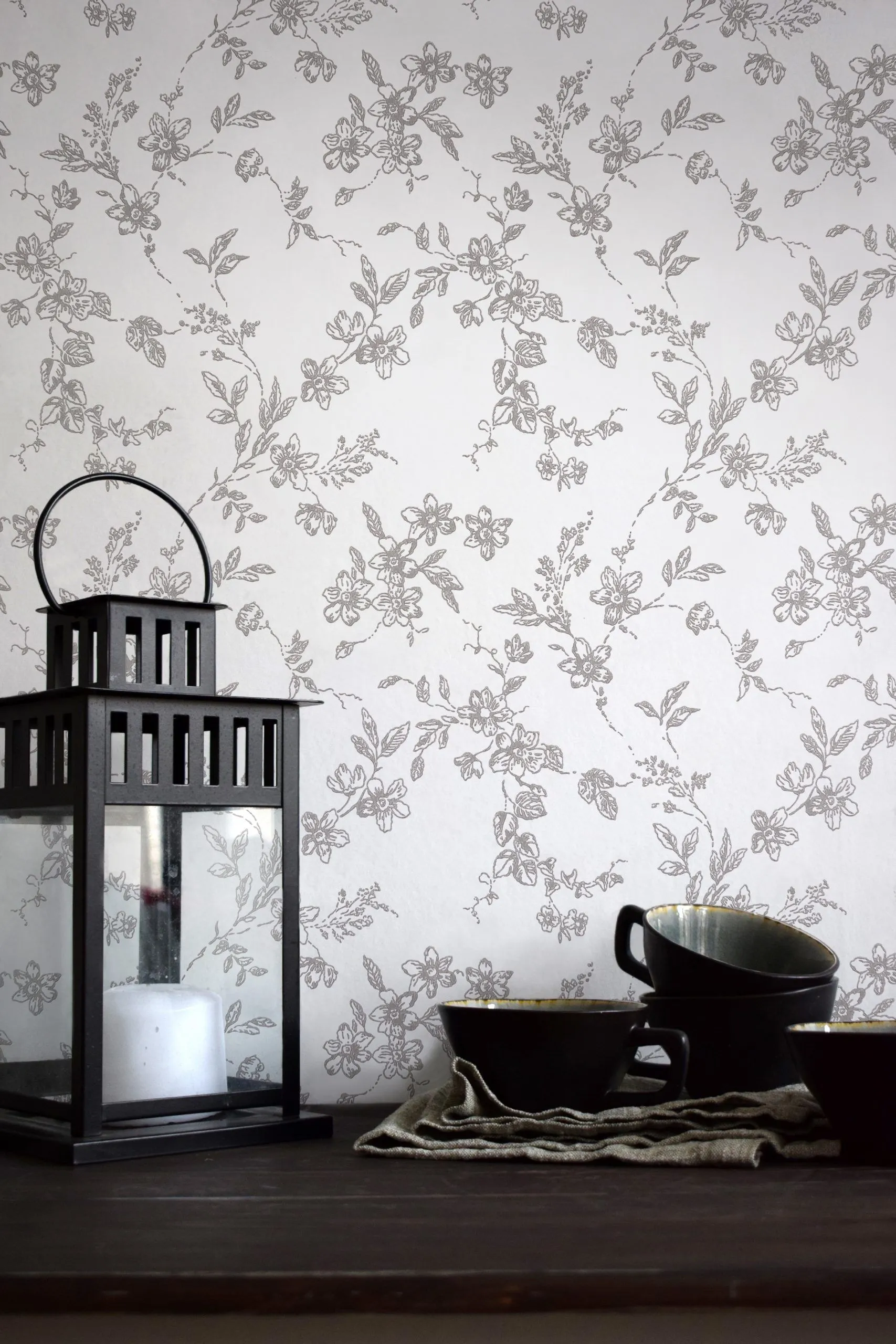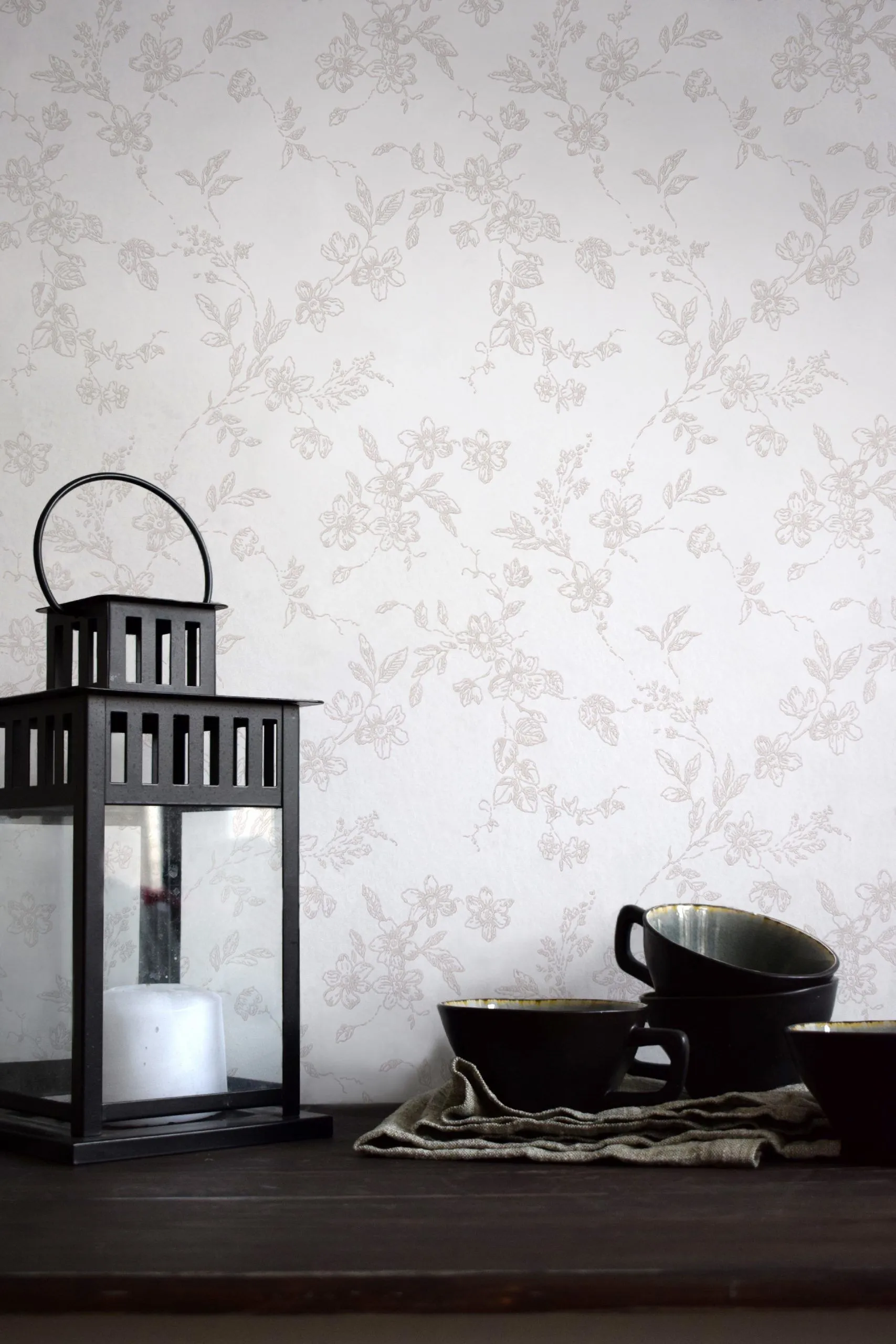 Duros blomtapet Bella har ett slingrande blommigt mönster som är inspirerat av blåblommigt porslin. En fin non woven-tapet som passar skandinavisk inredning, till exempel som sovrumstapet eller vardagsrumstapet.