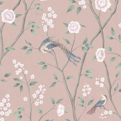 Cole & Son:s blommiga tapet Camellia med slingrande kamelia är en lugn tapet som passar i sovrummet eller vardagsrummet.