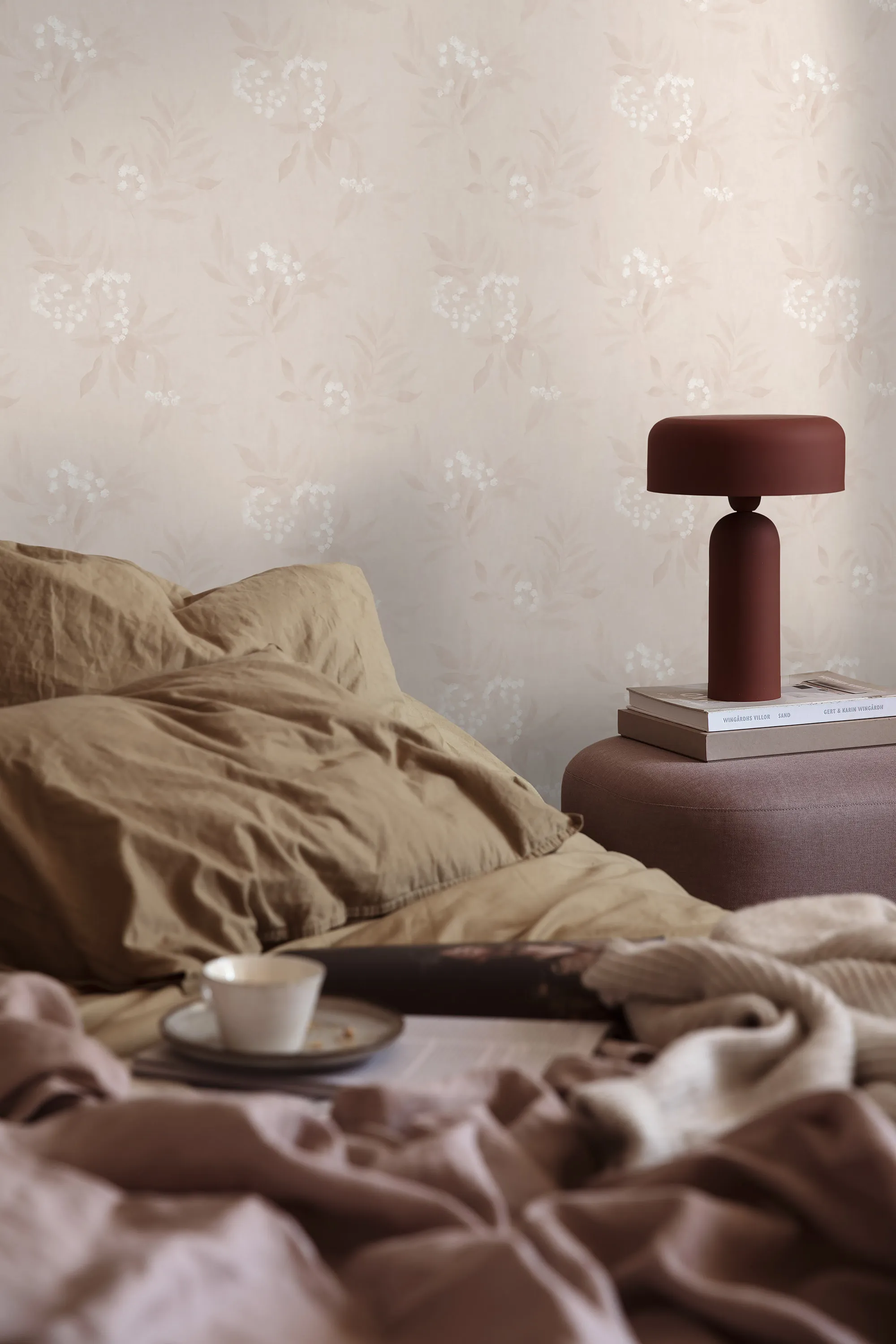 Boråstapeters blommiga tapet Doris har ett luftigt och romantiskt mönster. Den harmoniska tapeten är perfekt som sovrumstapet, vardagsrumstapet eller barnrumstapet.