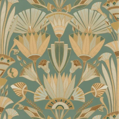 Elephantine-landskapstapeten för oss till en skog. Bara ett stenkast från naturreservatet på Elefantinön finns en frodig palmkrog som är hem för ibisar och gråhägrar. I denna panorama, som kombinerar egyptiska bilder och art deco-komposition, avbildas reflekterande hägrar. Detta panoramiska väggpanel som består av fyra delar och är digitalt tryckt på en metallisk bas är 280 cm brett. Skapa ett fönster till en forntida värld i ditt hem och ta in en nypa historia på dina väggar med denna unika tapet.