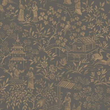 Tapeten Emrik har ett tätt mönster av plommonträdets frukter och blad. Tapeten passar bra i hallen, vardagsrummet eller köket.