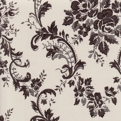 Muraltapeten Garden Gate är svartvit med snirkligt svart mönster, som liknar en metallgrind, på vit bakgrund. En vacker tapet till arbetsrum eller sovrum.