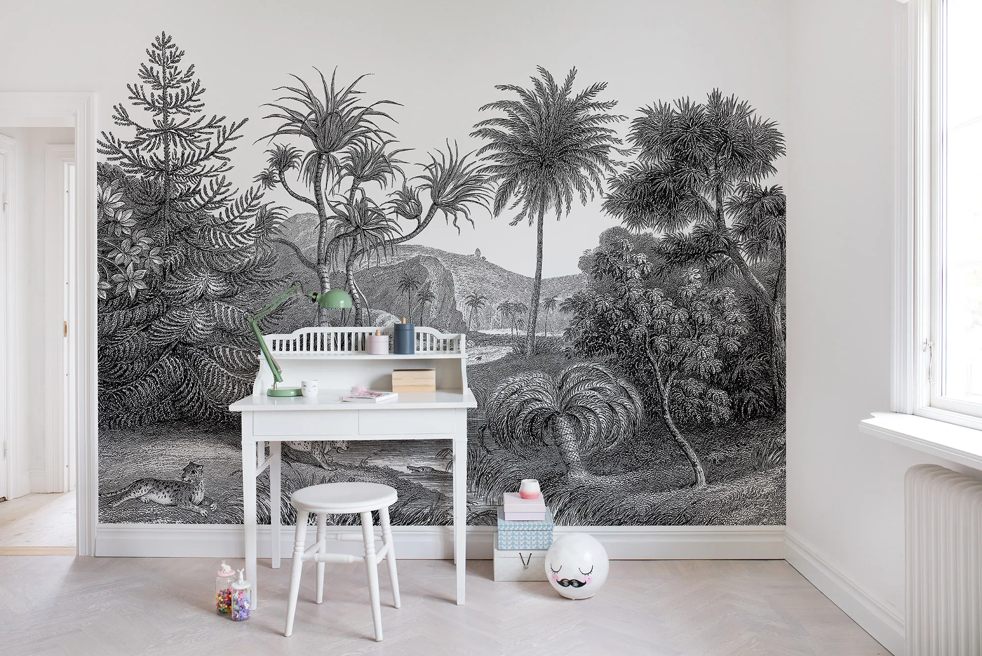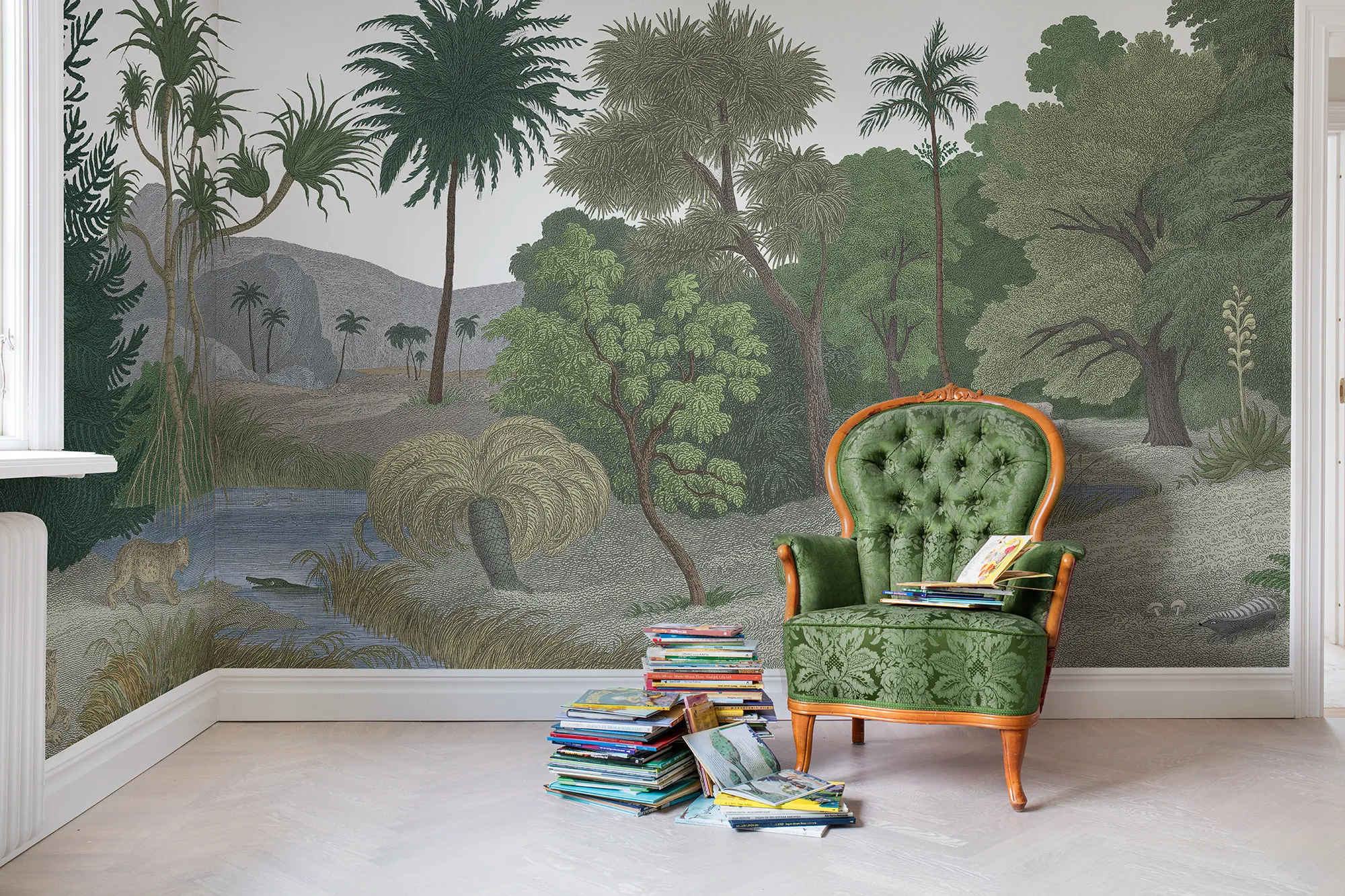 Muraltapeten Jungle Land är en dramatisk djungeltapet. En spännande tapet som passar i barnrummet, sovrummet, matsalen eller vardagsrummet.